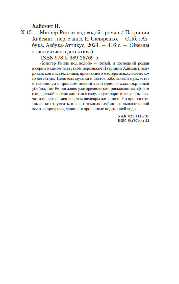 Пятая книга из цикла «Мистер Рипли».