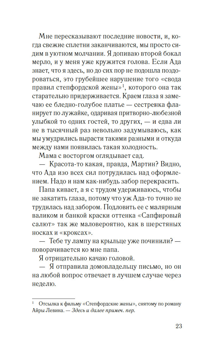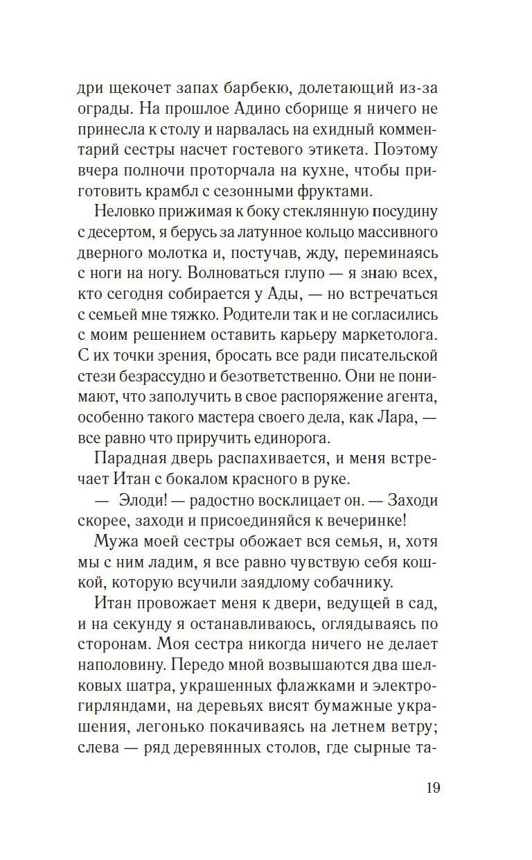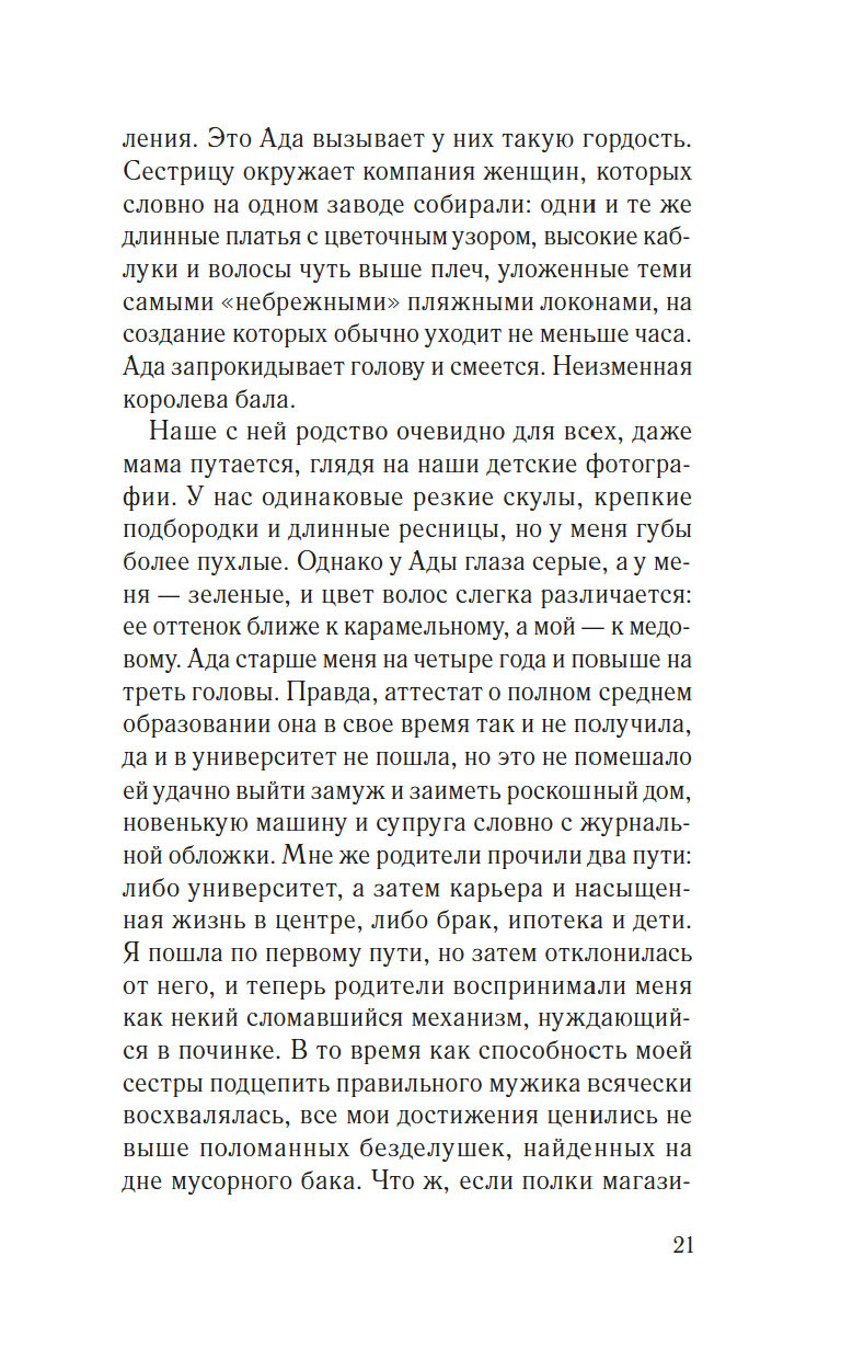 Элоди Фрей мечтает походить на свою идеальную сестру Аду, гордость их родителей. Решившись бросить престижную работу ради писательской карьеры, Элоди надеется, что вот-вот наступит ее звездный час, но проходит год, а успеха так и не предвидится. И надежда сменяется отчаянием.