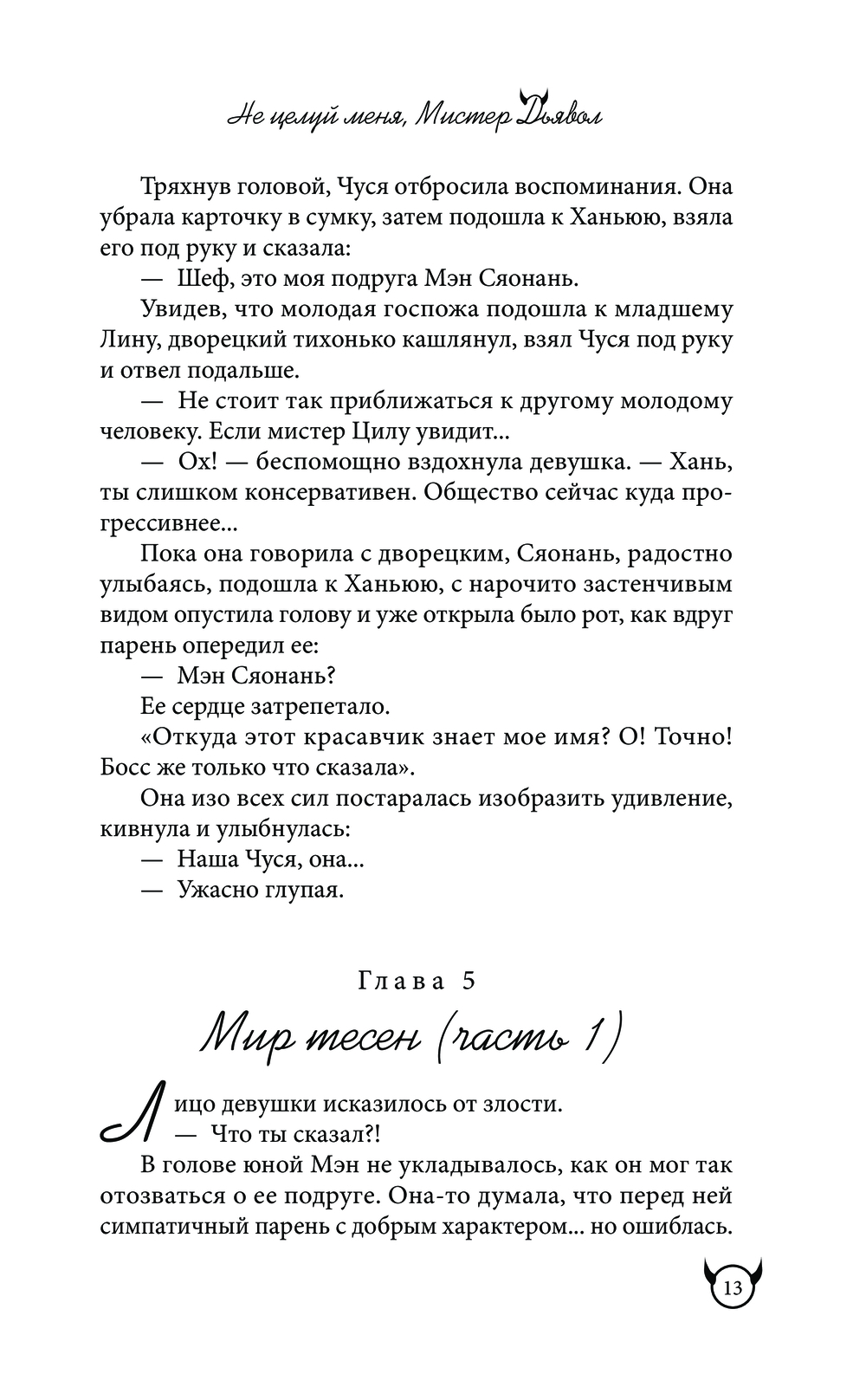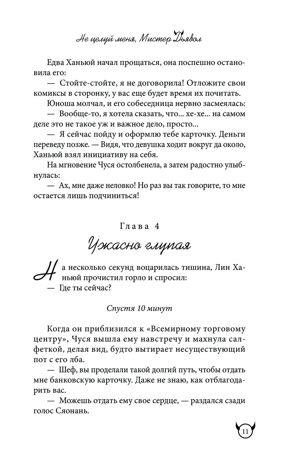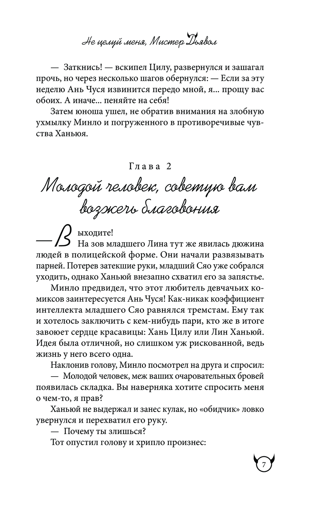 Так еще и в интернете завирусился веб-роман "Не целуй меня, Мистер Дьявол", с ужасающей скоростью набирающий популярность. Наткнувшись на него совершенно случайно, Ань Чуся испытывает сложные эмоции. Разве главный герой не подозрительно похож на знакомого ей Дьявола Ханя? А героиня… ну точно она сама?..