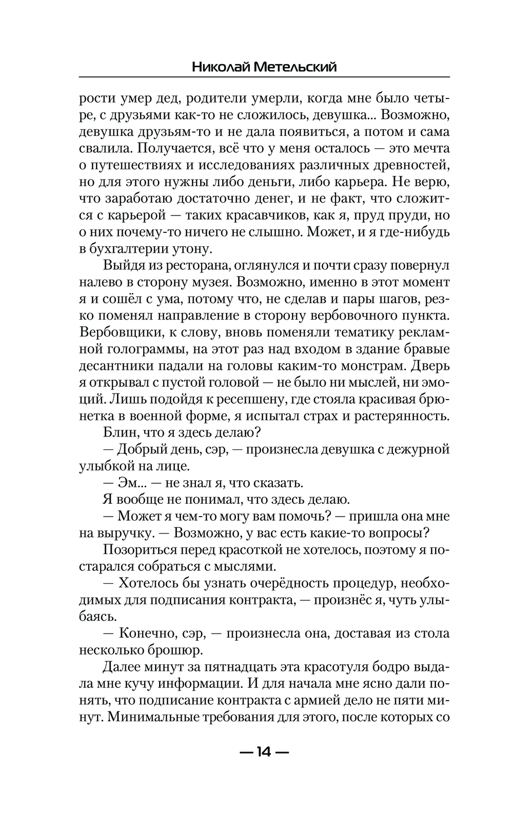 Марич отучился на историка, поработал в музее, хотел стать археологом. Он не бедствовал, изучил восемь языков и собирался жениться. А потом что-то пошло не так. Его бросали, посылали на смерть, не давали эвакуироваться, зажимали в угол, он сам шёл на смерть. Но это сержант Марич. Самый везучий неудачник в галактике, с самым жёстким взводом десанта. Я попытаюсь его убить, но мне уже что-то страшно...