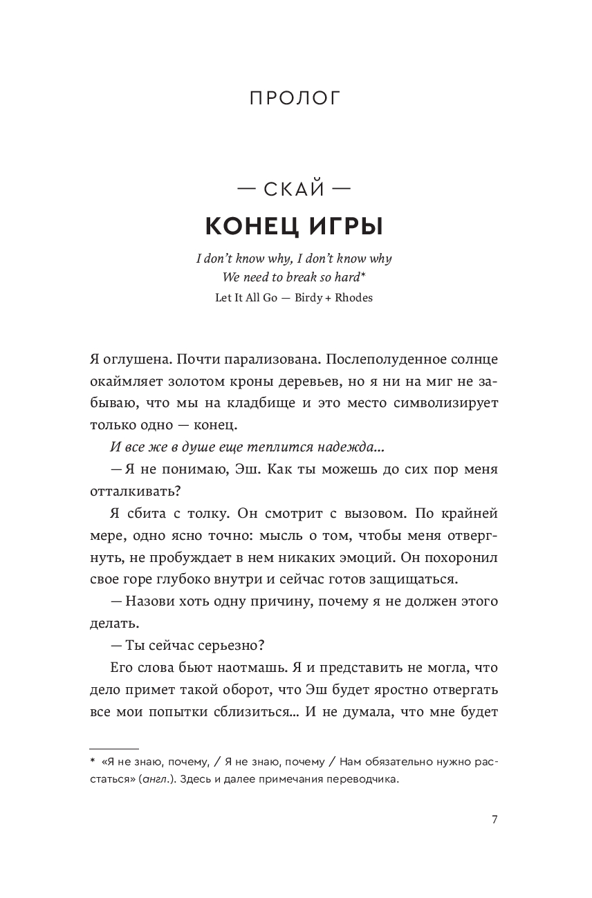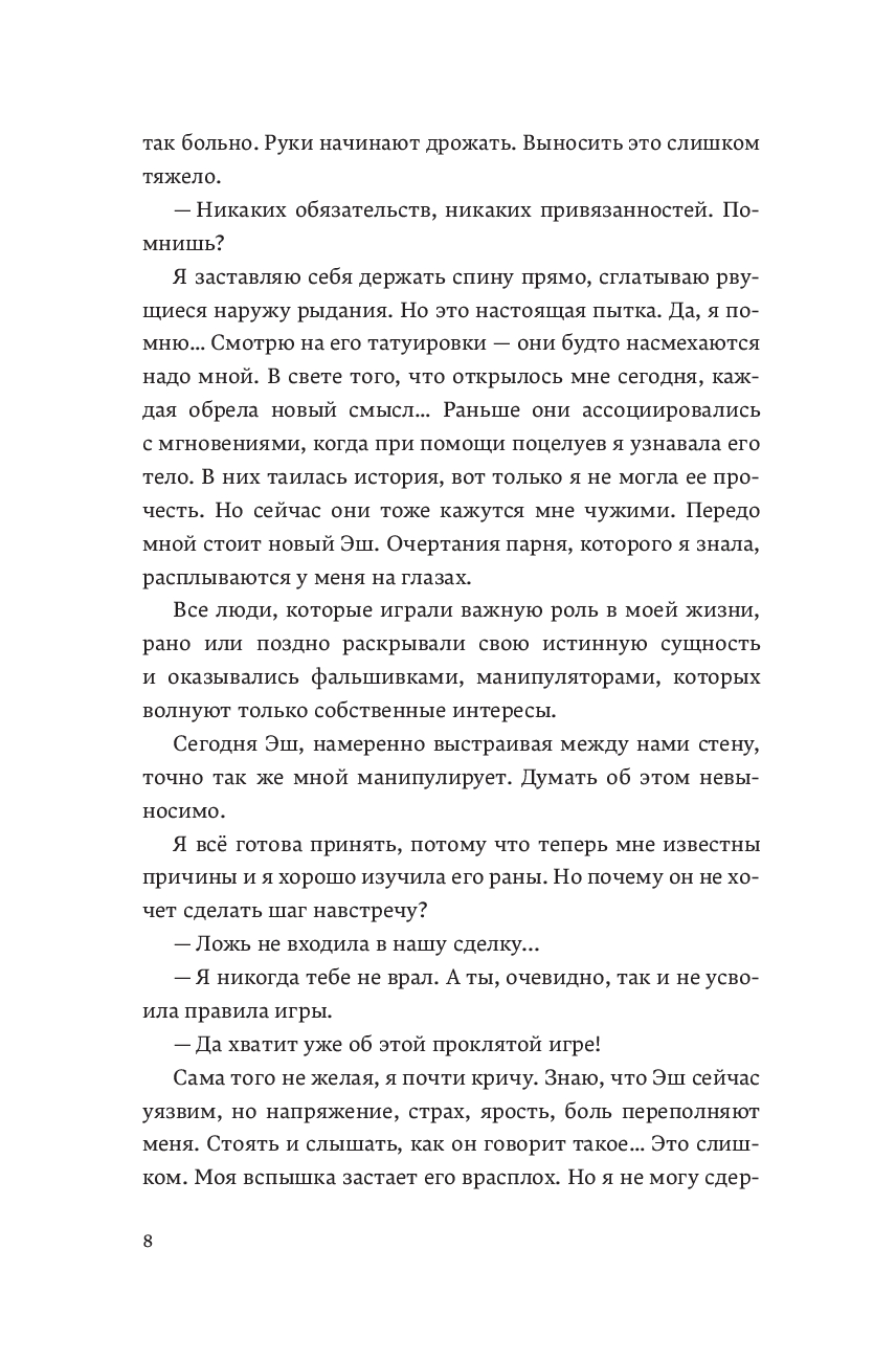 Скай приехала в колледж, чтобы оказаться в тысяче миль от своей семьи и забыть о прошлом. Правда, связаться с Эшем – не лучший способ начать жизнь с чистого листа. Все предупреждают Скай, что этот парень меняет девушек как перчатки. Но так ли он бессердечен, как кажется на первый взгляд? Или просто хочет держать своих внутренних демонов на безопасном расстоянии от других людей? Но Скай не пугают чужие демоны – она слишком занята борьбой со своими.