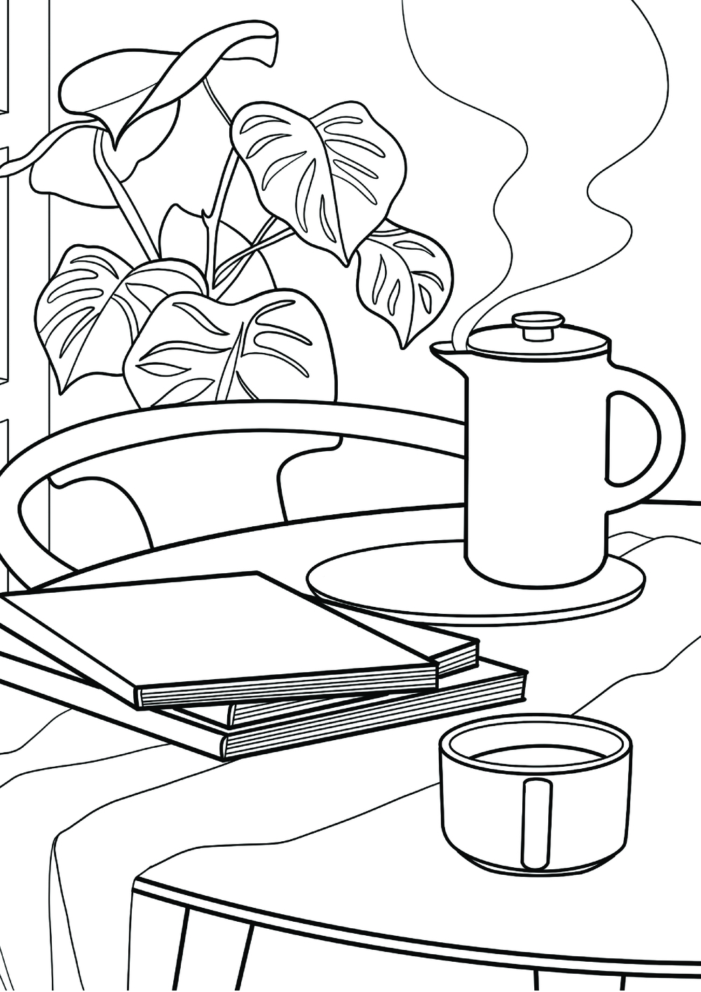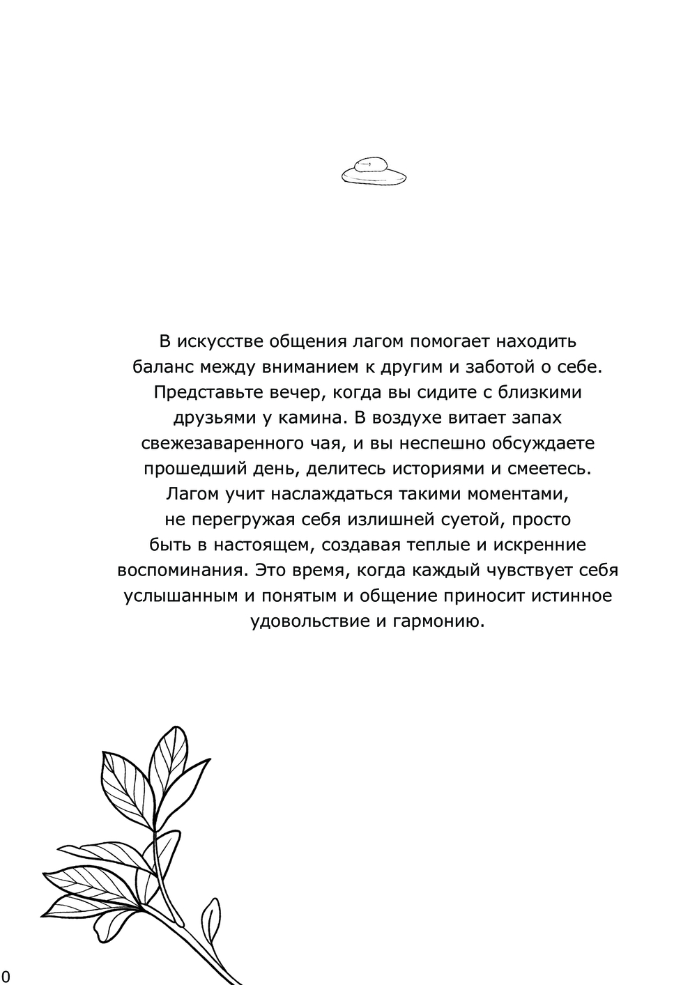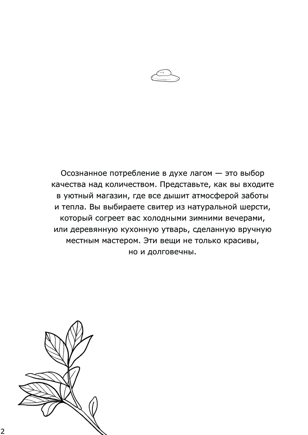 Каждая страница содержит уникальные иллюстрации, вдохновленные природой, уютом повседневной жизни и гармонией. Здесь вы найдете спокойные пейзажи, детали интерьеров и моменты наслаждения, которые напоминают о важности замедления и внимательности.