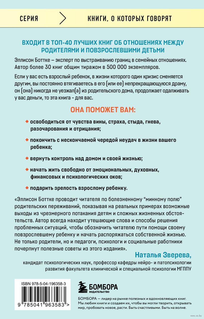 Если у вас есть взрослый ребенок, в жизни которого один кризис сменяется другим, вы постоянно втягиваетесь в его (или ее) непрекращающуюся драму, он (она) никогда не уезжал(а) из родительского дома, продолжает одалживать у вас деньги, то эта книга – для вас.