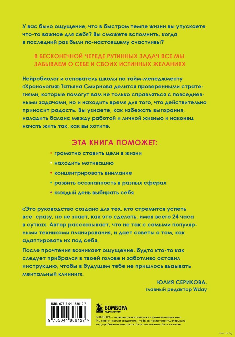 Нейробиолог и основатель школы по тайм-менеджменту "Хронология" Татьяна Смирнова делится проверенными стратегиями, которые помогут вам не только справляться с повседневными задачами, но и находить время для того, что действительно приносит радость. Вы узнаете, как избежать выгорания, наладить баланс между работой и личной жизнью и, наконец, начать жить так, как вы хотите.