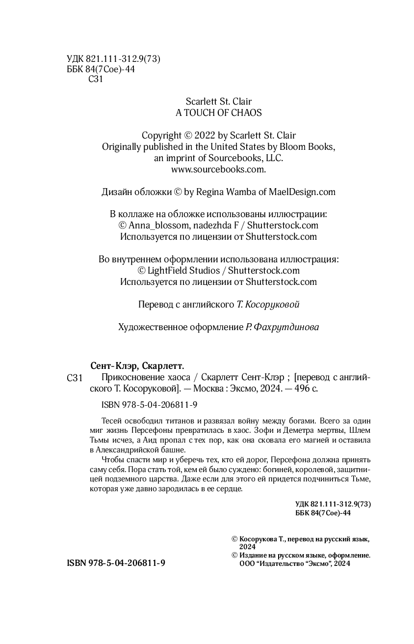 "Прикосновение хаоса" – четвертая книга романтического фэнтези-цикла, который является авторской интерпретацией мифа "Аид и Персефона". Волшебный мир, где среди людей живут древнегреческие боги.