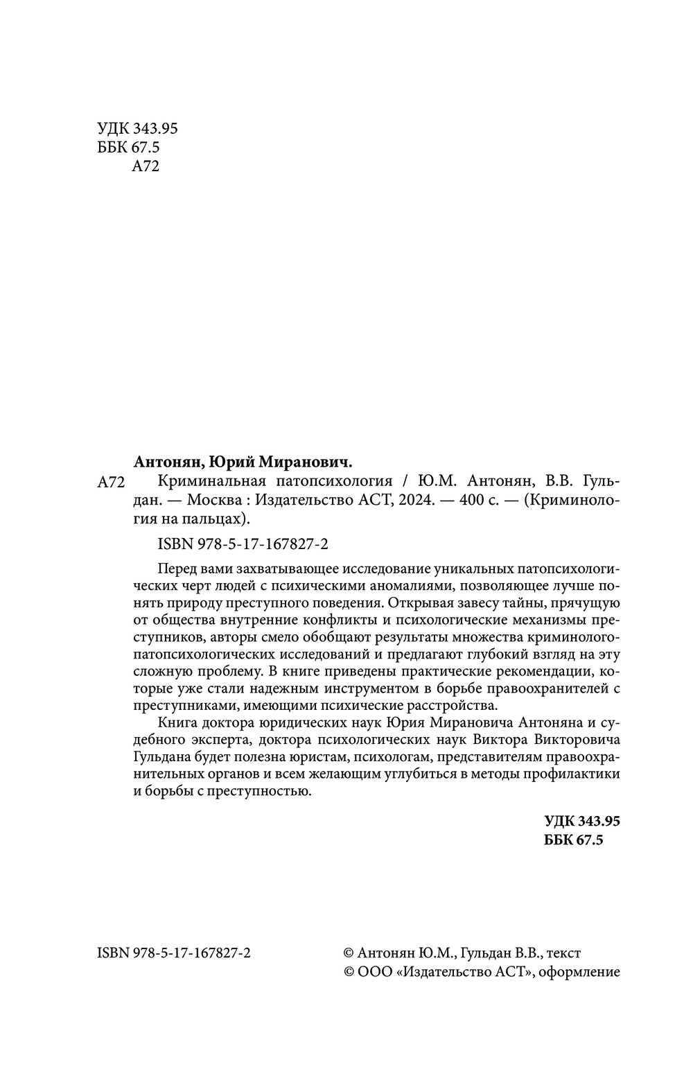 Книга будет полезна юристам, психологам, представителям правоохранительных органов и всем желающим углубиться в методы профилактики и борьбы с преступностью.