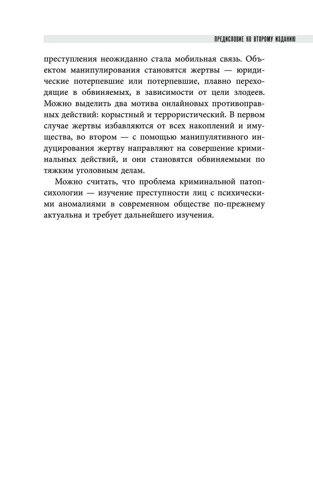 Перед вами захватывающее исследование уникальных патопсихологических черт людей с психическими аномалиями, позволяющее лучше понять природу преступного поведения. Открывая завесу тайны, прячущую от общества внутренние конфликты и психологические механизмы преступников, авторы смело обобщают результаты множества криминолого-патопсихологических исследований и предлагают глубокий взгляд на эту сложную проблему. В книге приведены практические рекомендации, которые уже стали надежным инструментом в борьбе правоохранителей с преступниками, имеющими психические расстройства.