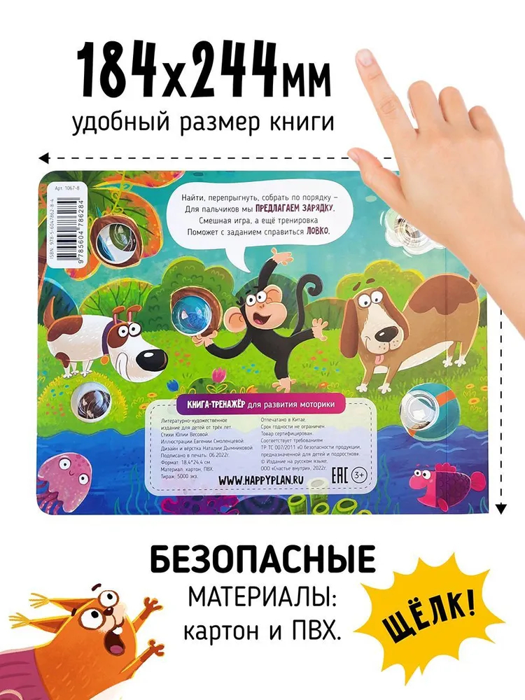 Серия книг с сенсорными пупурышками представляет собой игровой тренажер для развития мелкой моторики, и как следствие речи, координации, внимания, интеллекта!