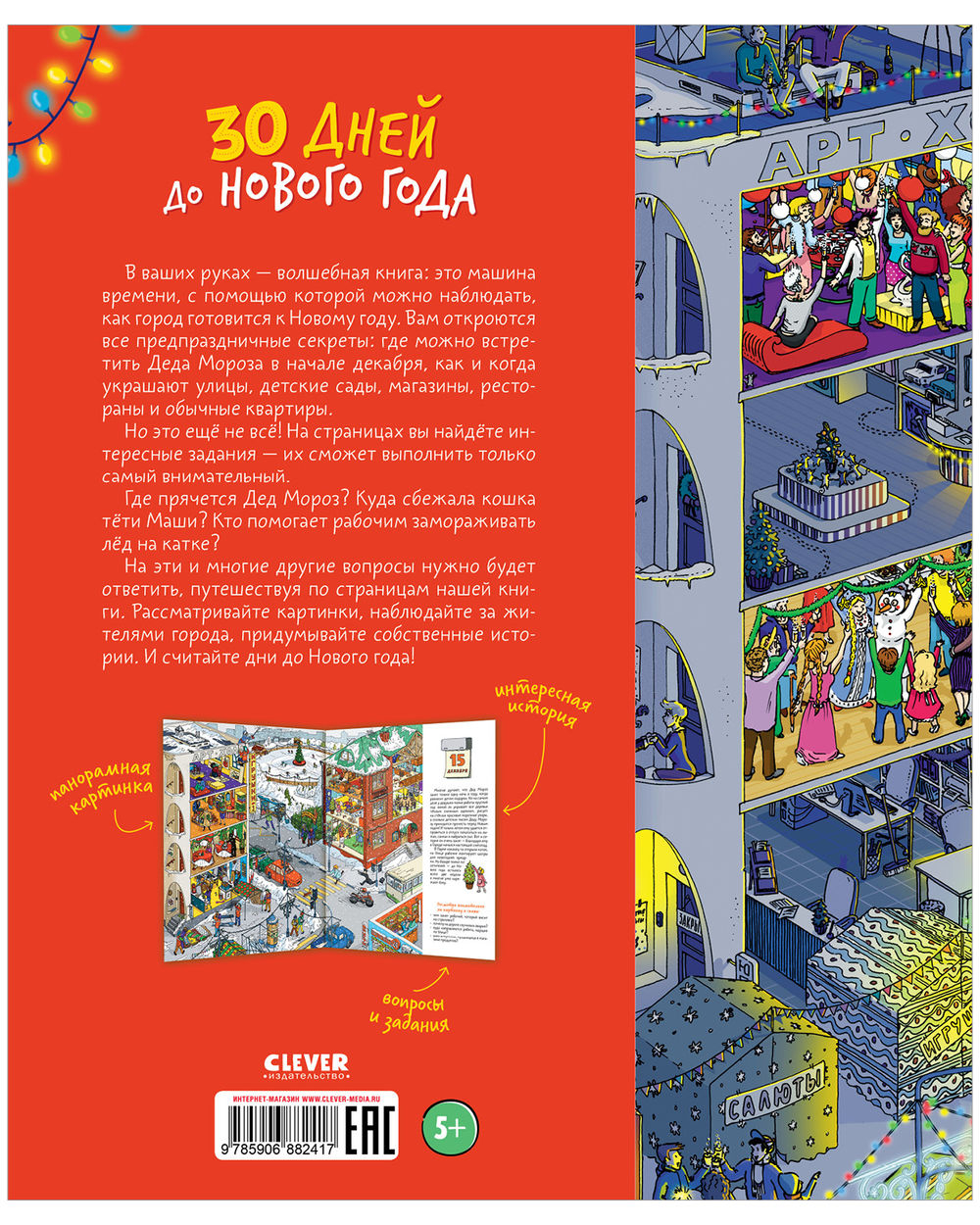 Книга "30 дней до Нового года" – это машина времени, с помощью которой можно разъезжать по городу, заглядывать в разные дни и часы, наблюдать, как семьи готовятся к празднику. На больших панорамных картинках вам откроются все предпраздничные секреты.