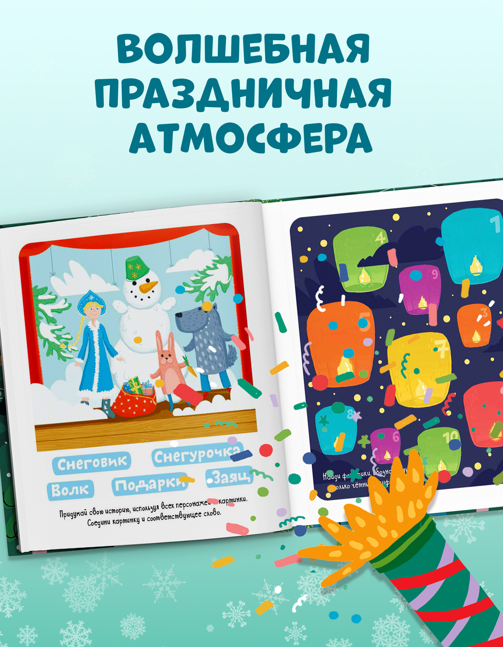 Ребенку предстоит превратить мыльные пузыри в веселых монстриков, помочь зайчику перебраться на другую сторону реки, решать ребусы, придумывать Деду Морозу помощников и выполнять еще множество веселых и полезных заданий.