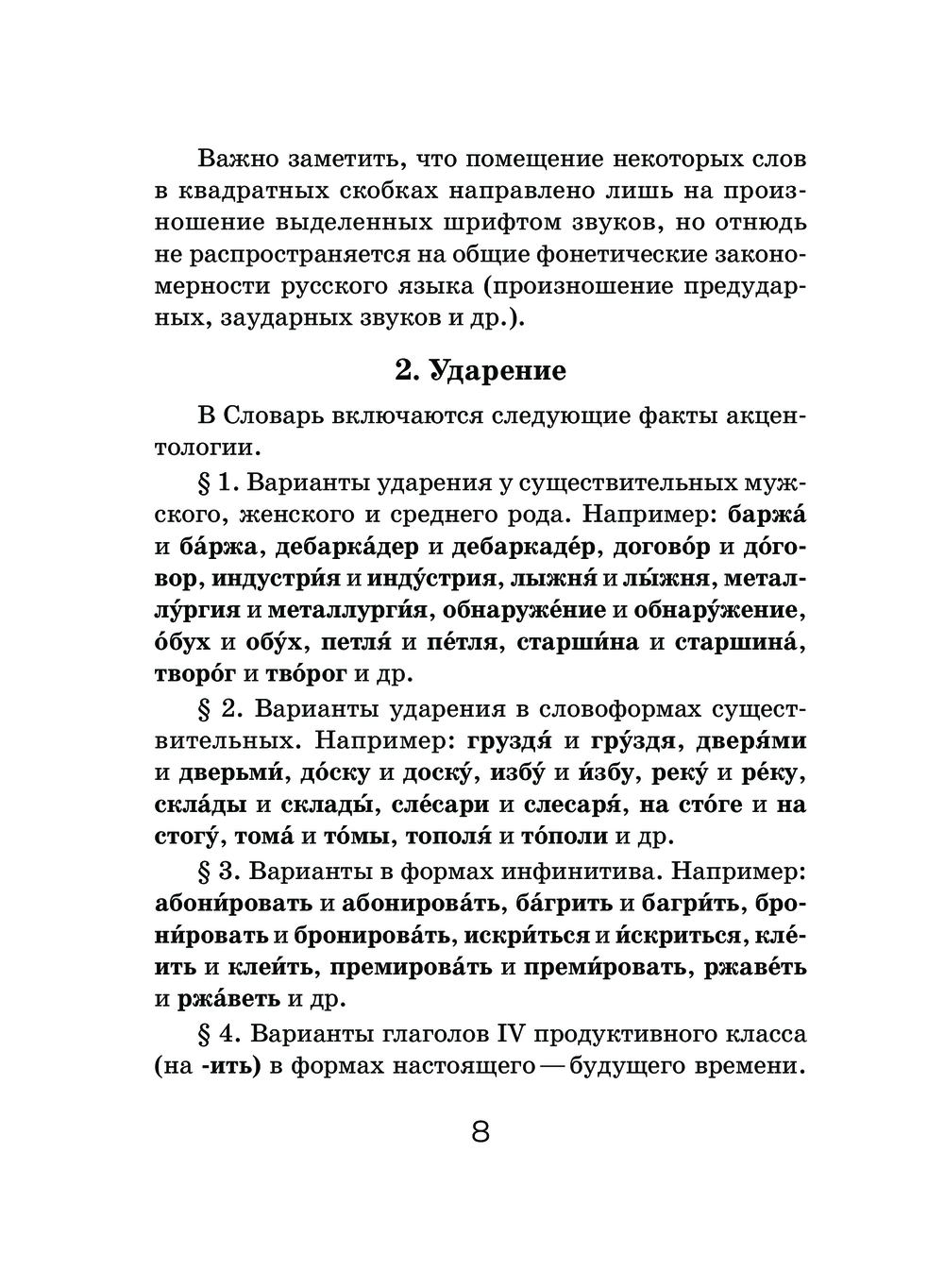 Издание содержит более 12 000 лексических единиц, в том числе устаревающих и устаревших. Каждое слово снабжено ударением. Слова сопровождаются вариантами допустимых ударений, в том числе запретительными примерами.