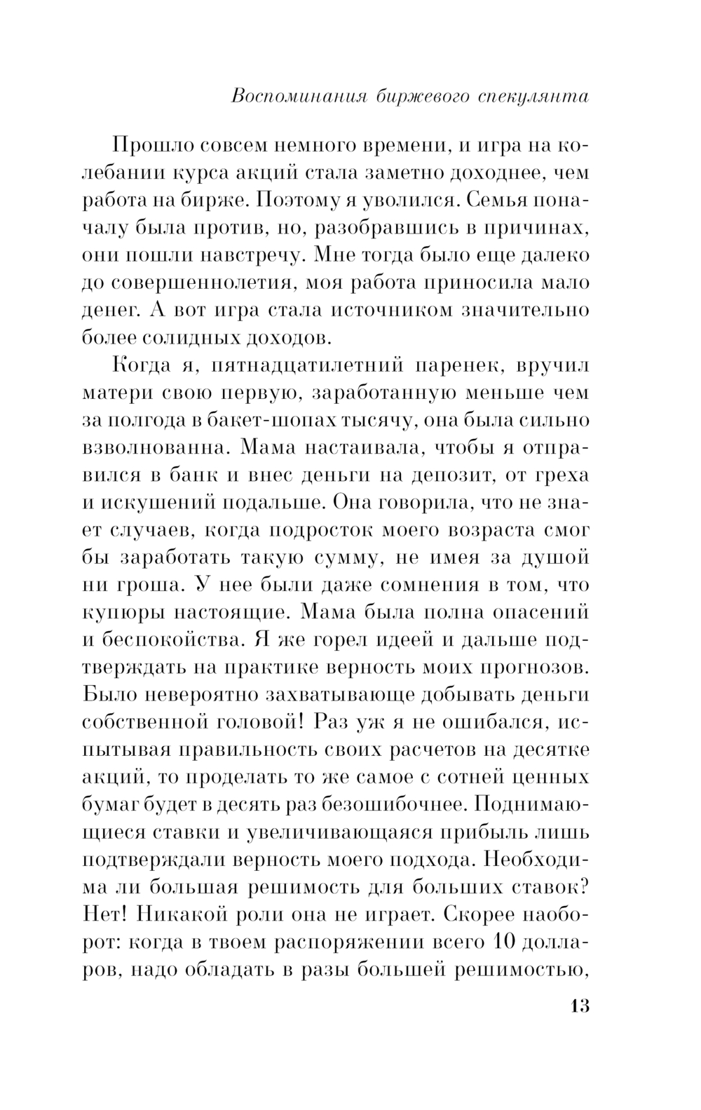 Книга погружает нас в атмосферу Уолл-стрит начала XX века. Один из сильнейших трейдеров мира Джесси Ливермор начал карьеру в брокерской конторе 15-летним подростком. Он не раз зарабатывал миллионы, терял их и зарабатывал вновь. На пути к успеху этот знаменитый финансист: