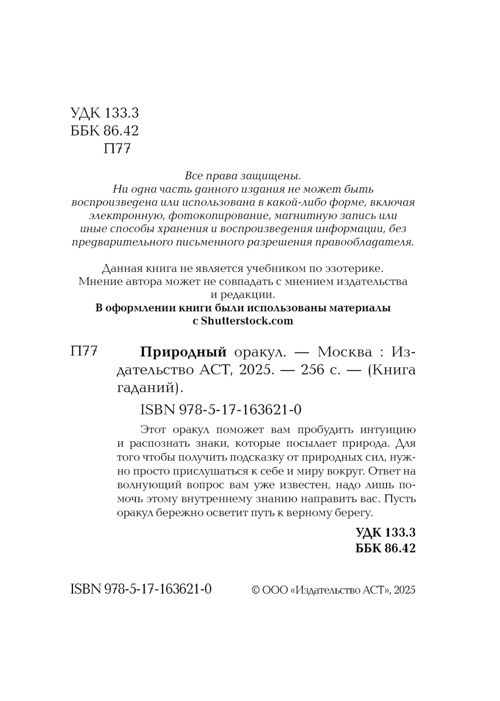 Этот оракул поможет вам пробудить интуицию и распознать знаки, которые посылает природа. Для того чтобы получить подсказку от природных сил, нужно просто прислушаться к себе и миру вокруг. Ответ на волнующий вопрос вам уже известен, надо лишь помочь этому внутреннему знанию направить вас. Пусть оракул бережно осветит путь к верному берегу.