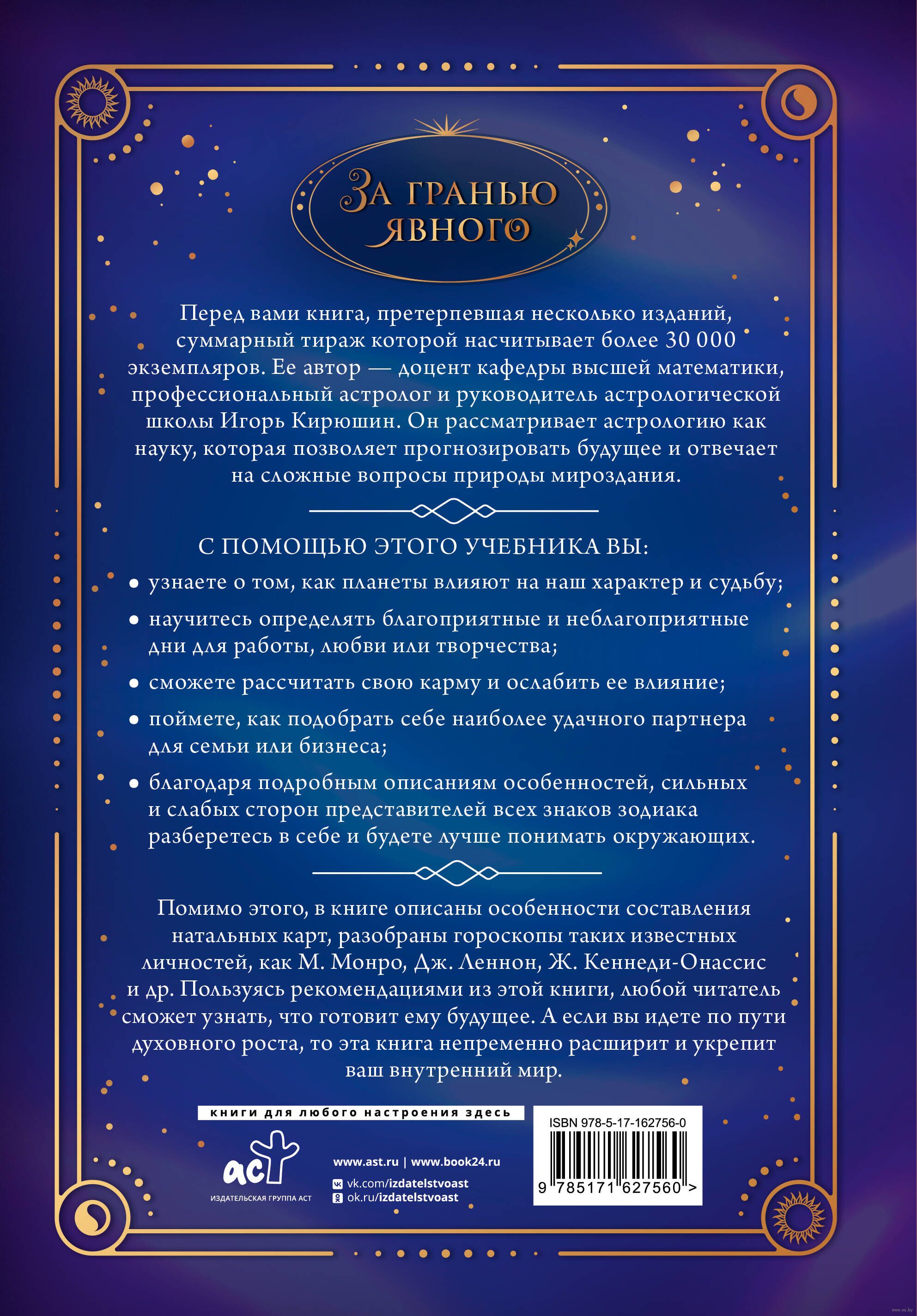 Перед вами книга, претерпевшая несколько изданий, суммарный тираж которой насчитывает более 30 000 экземпляров. Ее автор – доцент кафедры высшей математики, профессиональный астролог и руководитель астрологической школы Игорь Кирюшин. Он рассматривает астрологию как науку, которая позволяет прогнозировать будущее и отвечает на сложные вопросы природы мироздания.