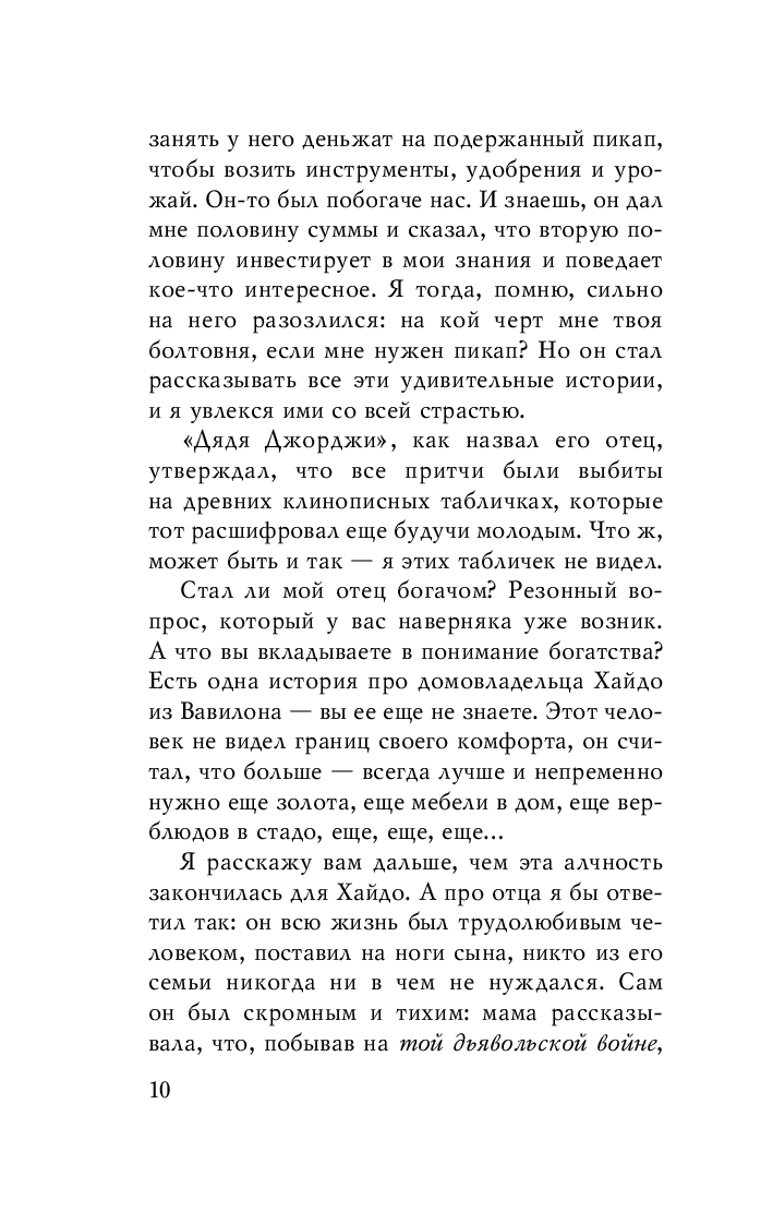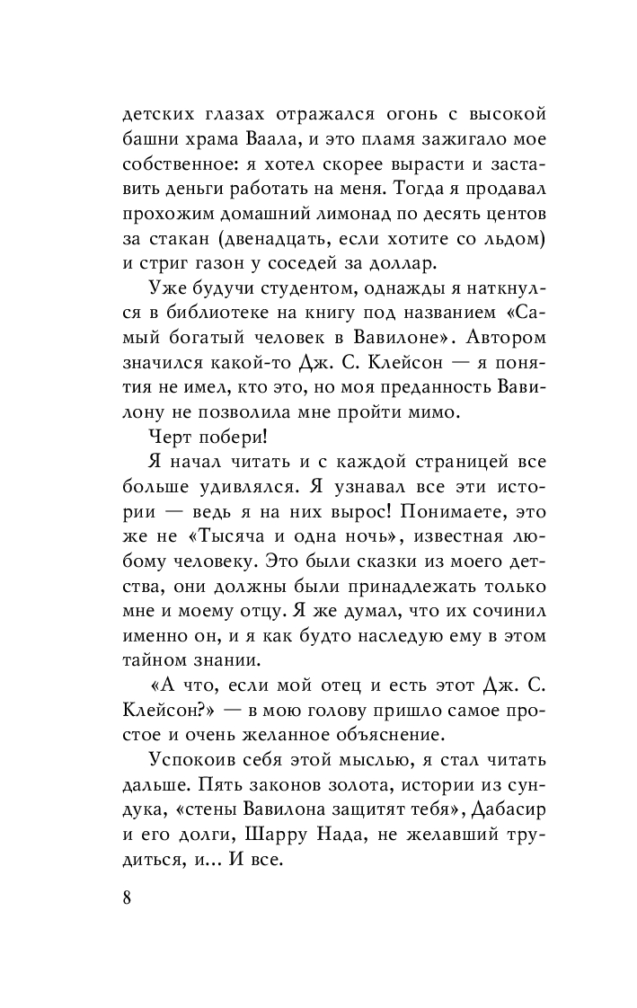 Продолжение легендарного бестселлер "Самый богатый человек в Вавилоне". Вы узнаете притчи, рассказанные Джорджем Клейсоном своему ученику, но по неведомой причине не вошедшие в основную книгу. В них богатейшие люди древнего города делятся мудростью, которая лежит в основе любого нажитого состояния. Герои потерянных притч Клейсона объясняют, как: