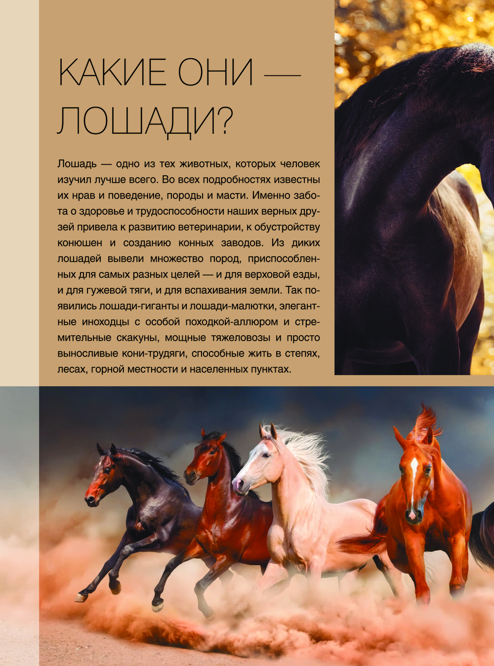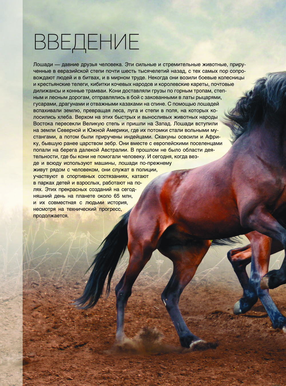 Чтобы познакомиться с лошадьми поближе, полюбоваться их статями и аллюрами, а также оценить роль этих грациозных животных в истории человечества, вовсе не обязательно отправляться в конноспортивную школу, на соревнования или конный парад. Достаточно открыть данную книгу – и вы окажетесь в удивительном мире благородных скакунов, могучих тяжеловозов и очаровательных мини-лошадок, которые вот уже несколько тысячелетий живут рядом с людьми, разделяя с ними тяготы труда и военные будни, веселье праздников и торжеств, вдохновляя своей красотой, удивляя резвостью и иными потрясающими способностями.