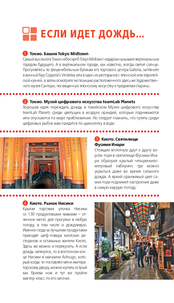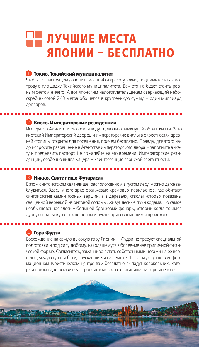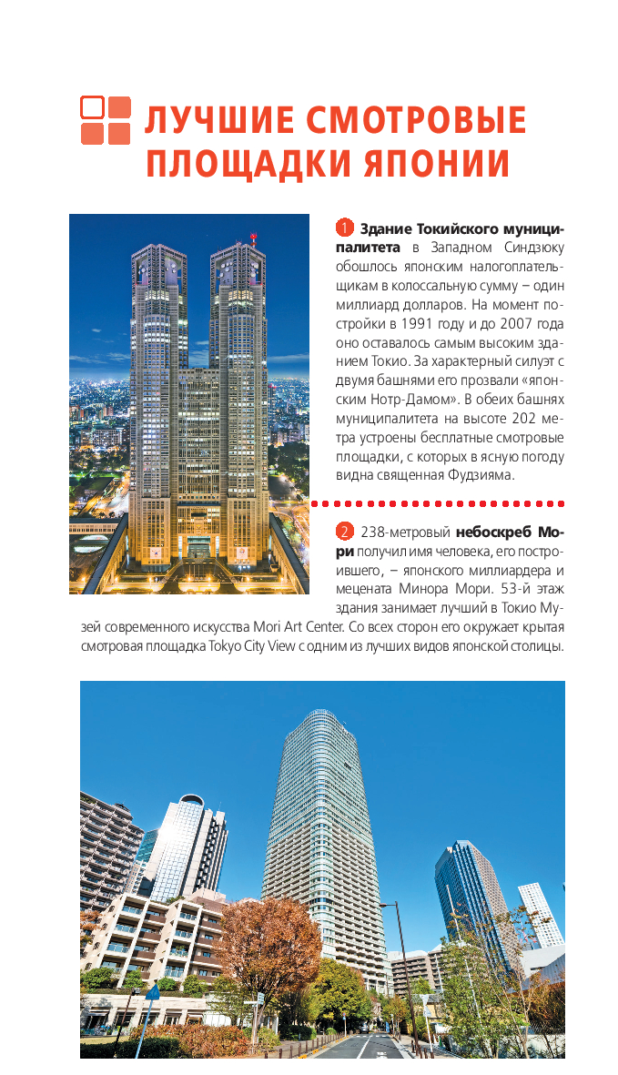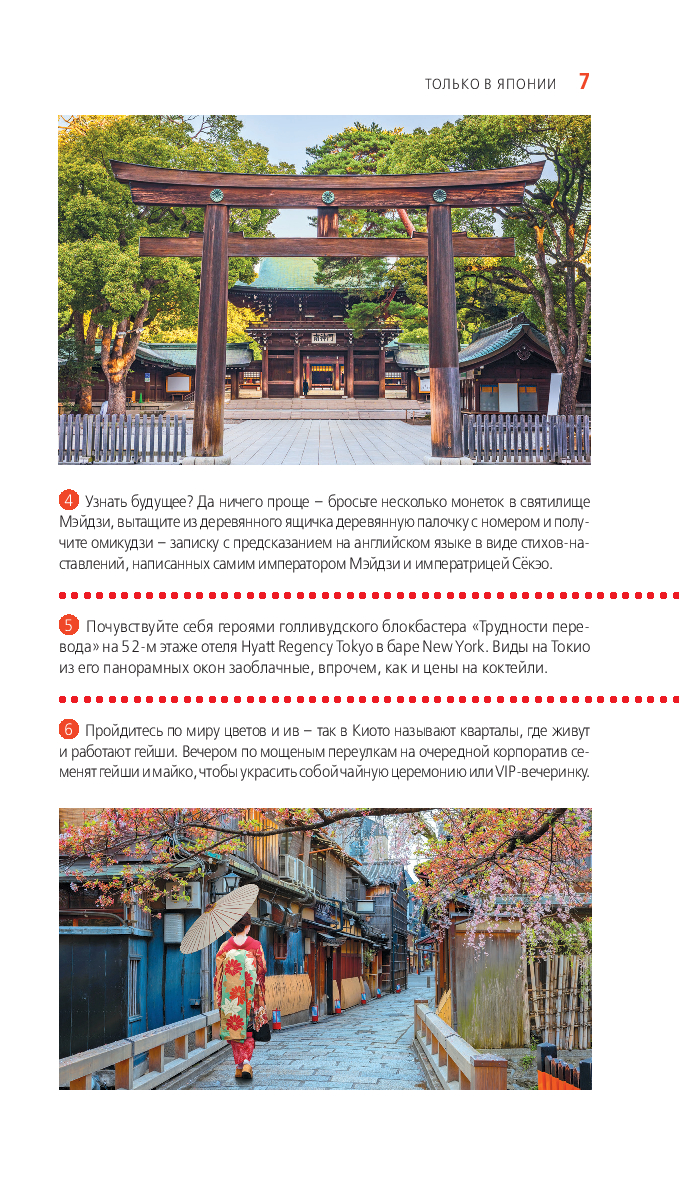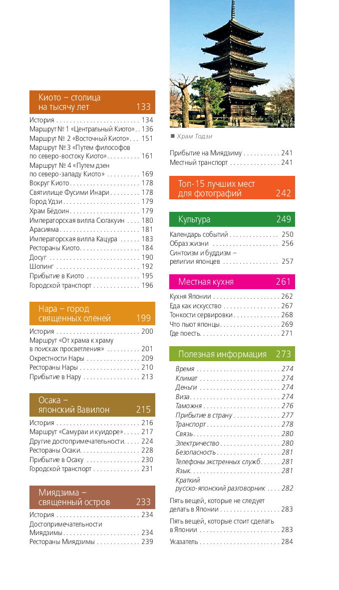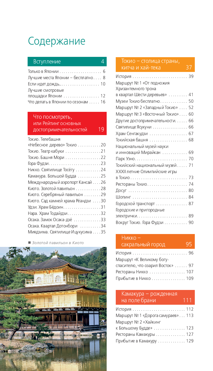 Вас ждут маршруты путешествий по главным достопримечательностям Японии. Ориентироваться на местности помогут удобные карты, расположенные на страницах путеводителя.