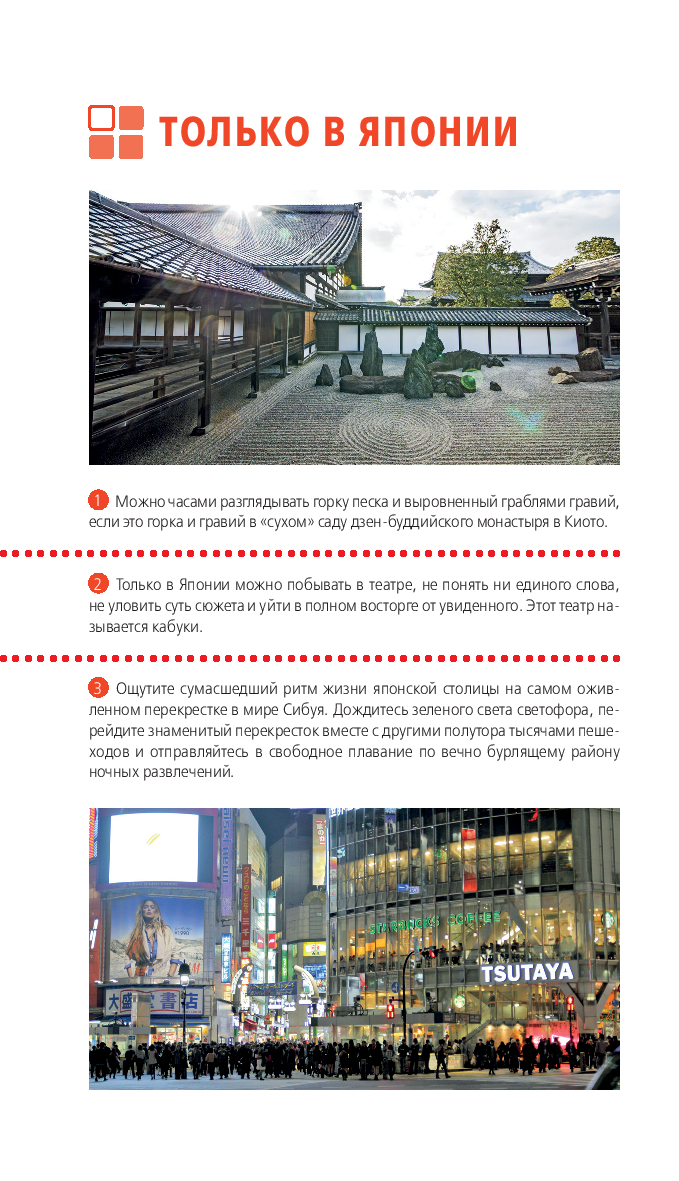 Удивительная богатая культура, тысячелетняя история и традиции, современные технологии и самобытность – все это Япония! Отправляйтесь в незабываемое путешествие по Стране Восходящего Солнца вместе с "Оранжевым гидом"!