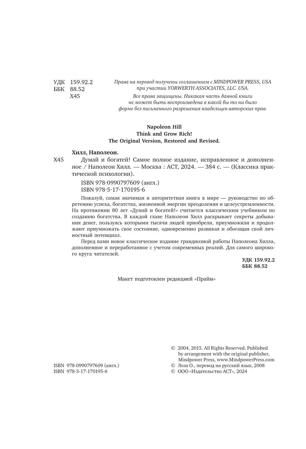 Перед вами новое классическое издание грандиозной работы Наполеона Хилла, дополненное и переработанное с учетом современных реалий.