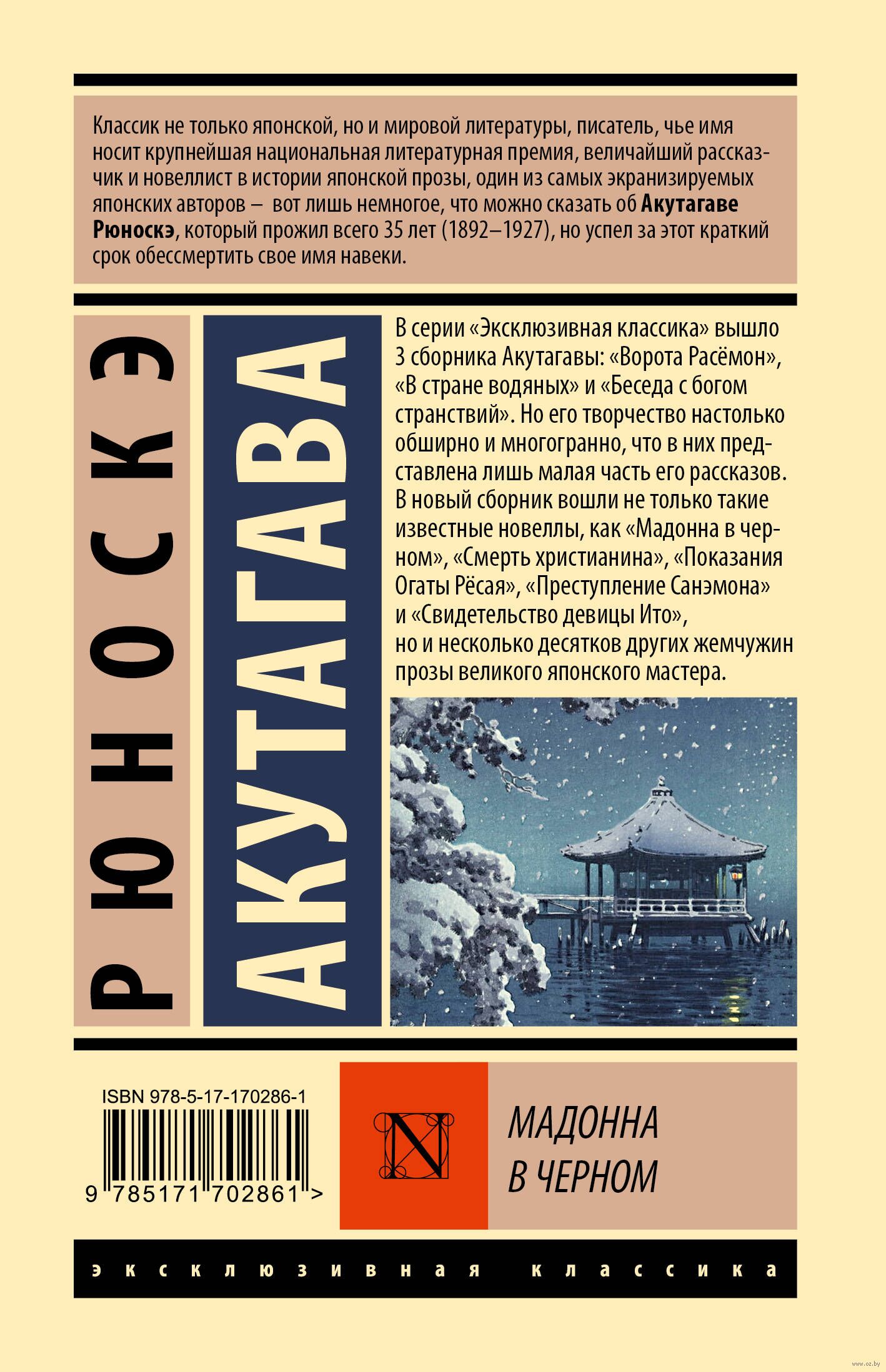 В серии "Эксклюзивная классика" вышло 3 сборника Акутагавы: "Ворота Расёмон", "В стране водяных" и "Беседа с богом странствий". Но его творчество настолько обширно и многогранно, что в них представлена лишь малая часть его рассказов.