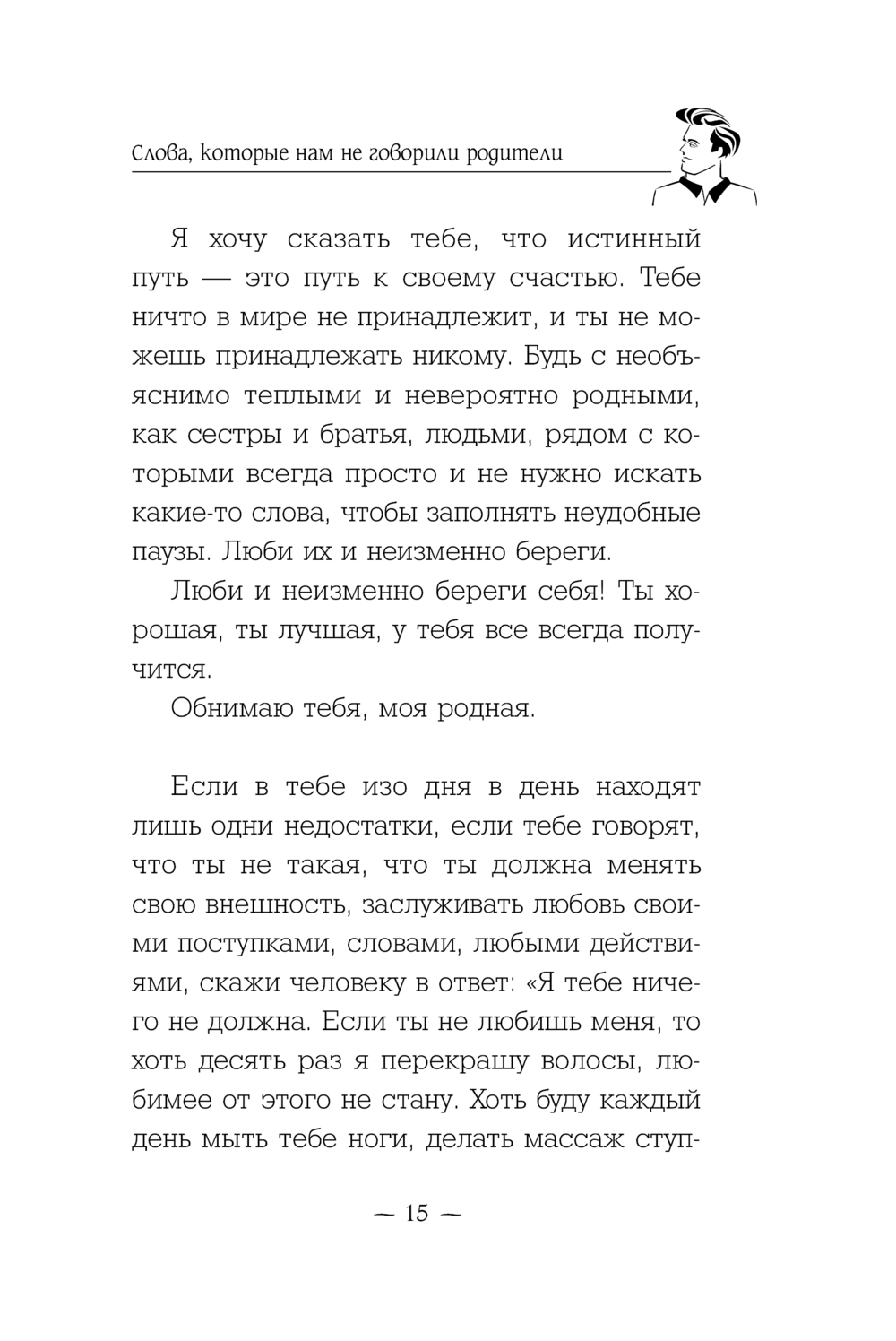 Молчание вместо поддержки, строгие отповеди вместо объятий, сложные отношения как норма жизни. Однажды привыкнув к такому, трудно представить, что можно как-то иначе относиться к своим возлюбленным, к своим детям, к своим родителям... что можно иначе относиться к самим себе. Тем, кому посвящена эта книга, предстоит многое узнать и переосмыслить, чтобы не просто выжить в этом мире, но наслаждаться им.