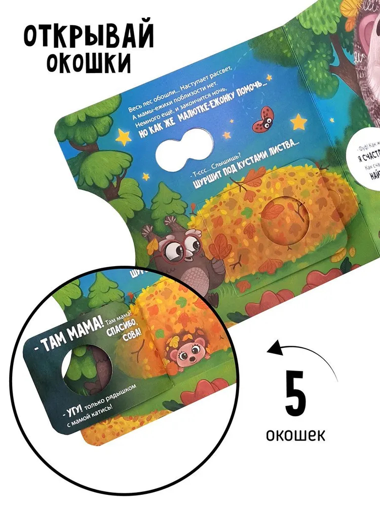 Интерактивная книга "Ежик ищет маму" с окошками направлена на развитие эмоционального интеллекта. Вместе с героем ребенок открывает секретные створки и ищет маму. Кто же скрывается в лесной чаще? Волк? Медведь? Или все-таки мама ежиха? В разных ситуациях ребенок знакомится с разными эмоциями и учится выражать свои чувства.