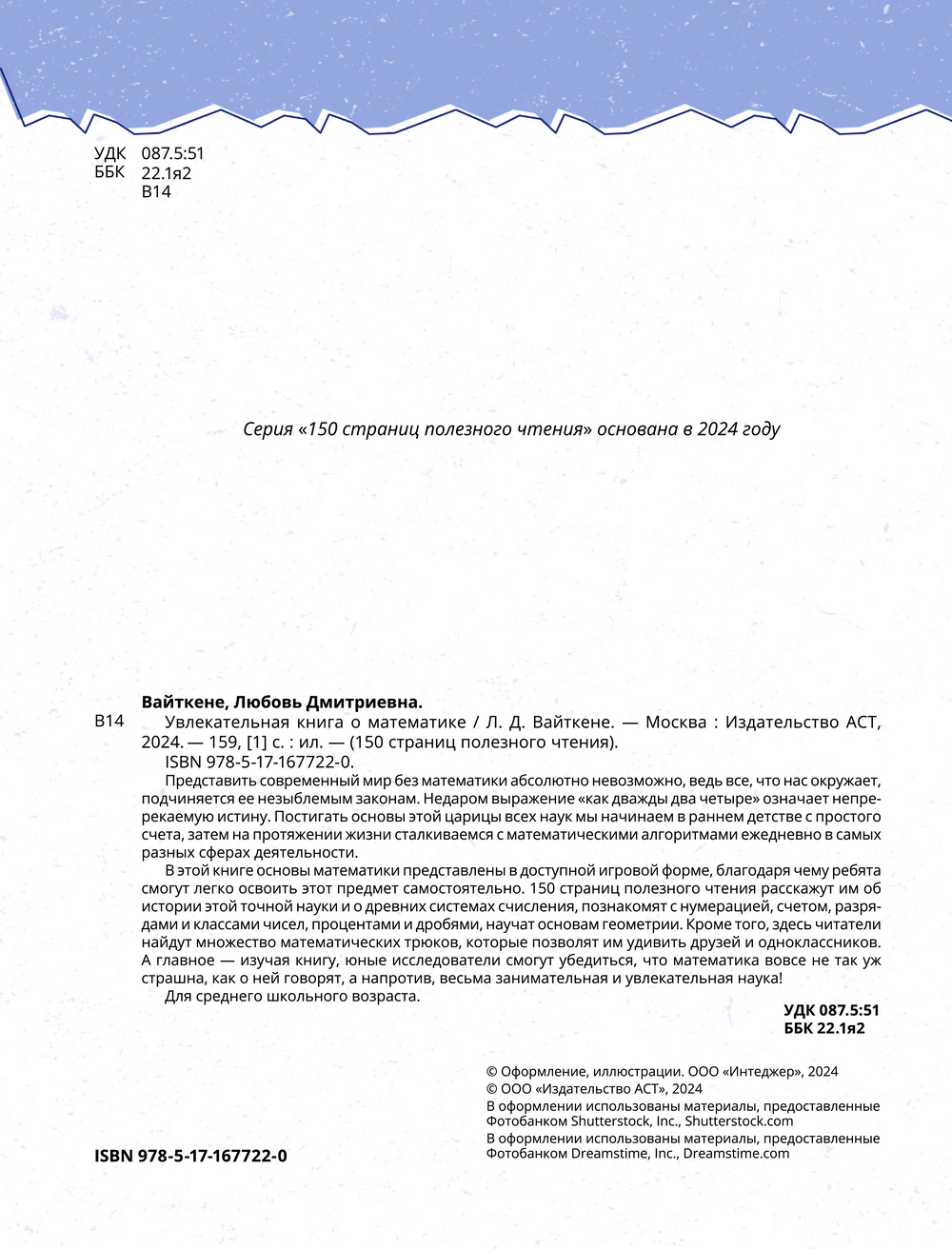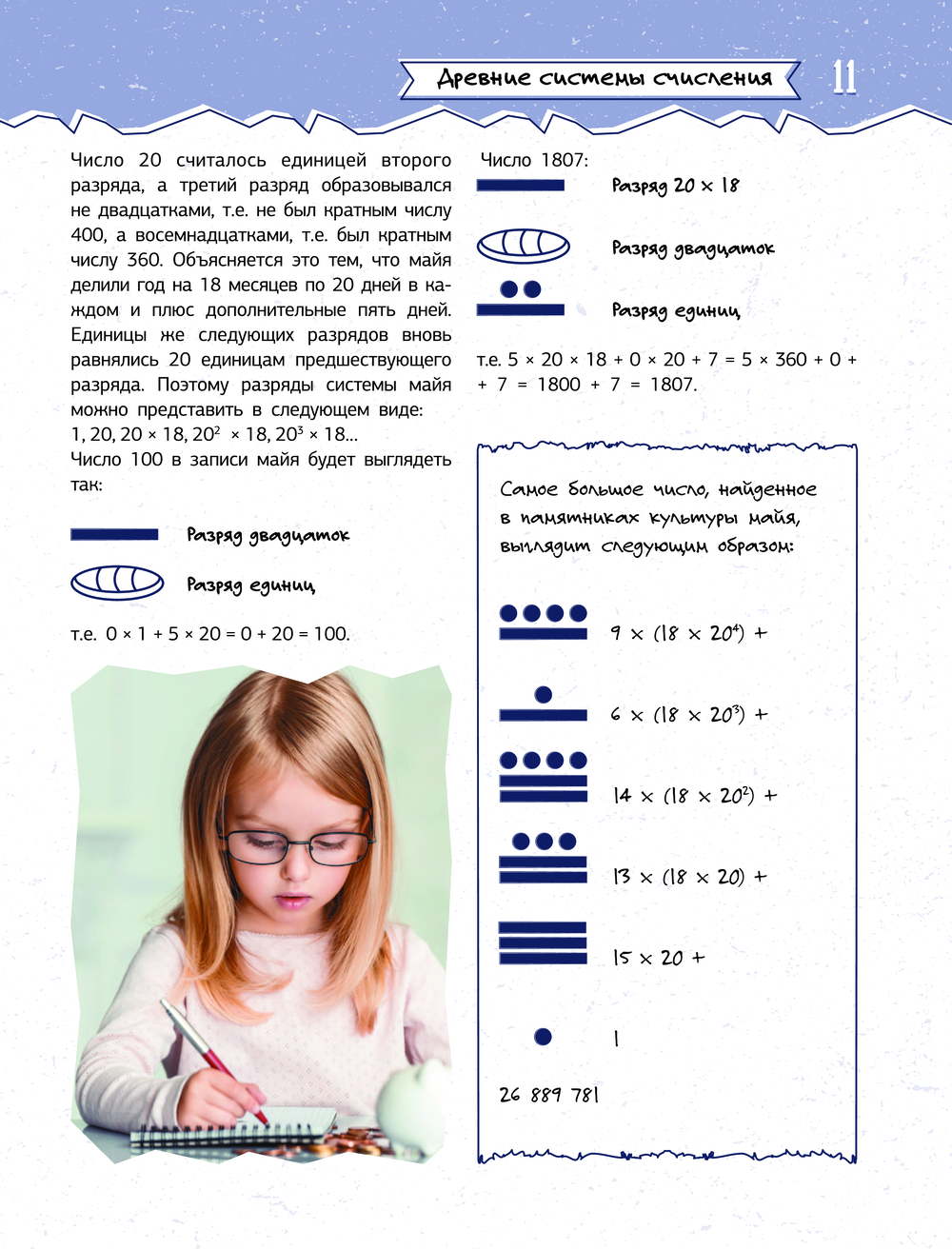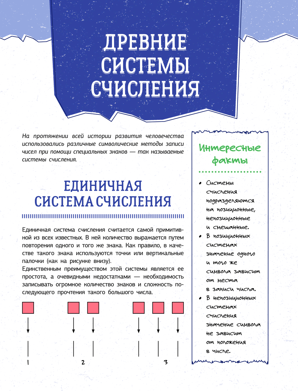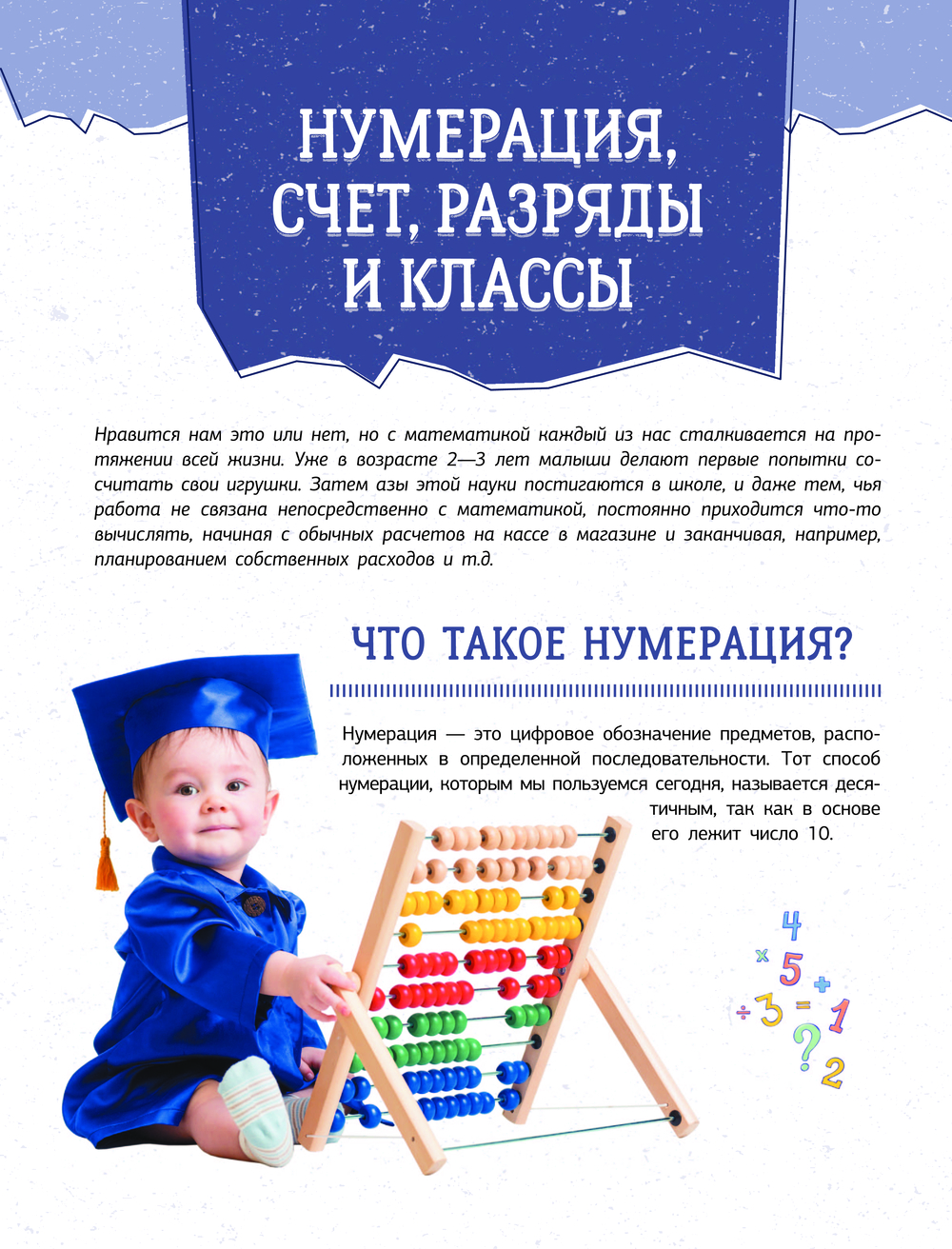 В этой книге основы математики представлены в доступной игровой форме, благодаря чему ребята смогут легко освоить этот предмет самостоятельно. 150 страниц полезного чтения расскажут им об истории этой точной науки и о древних системах счисления, познакомят с нумерацией, счетом, разрядами и классами чисел, процентами и дробями, научат основам геометрии. Кроме того, здесьчитатели найдут множество математических трюков, которые позволят им удивить друзей и одноклассников. А главное – изучая книгу, юные исследователи смогут убедиться, что математика вовсе не так уж страшна, как о ней говорят, а напротив, весьма занимательная и увлекательная наука!