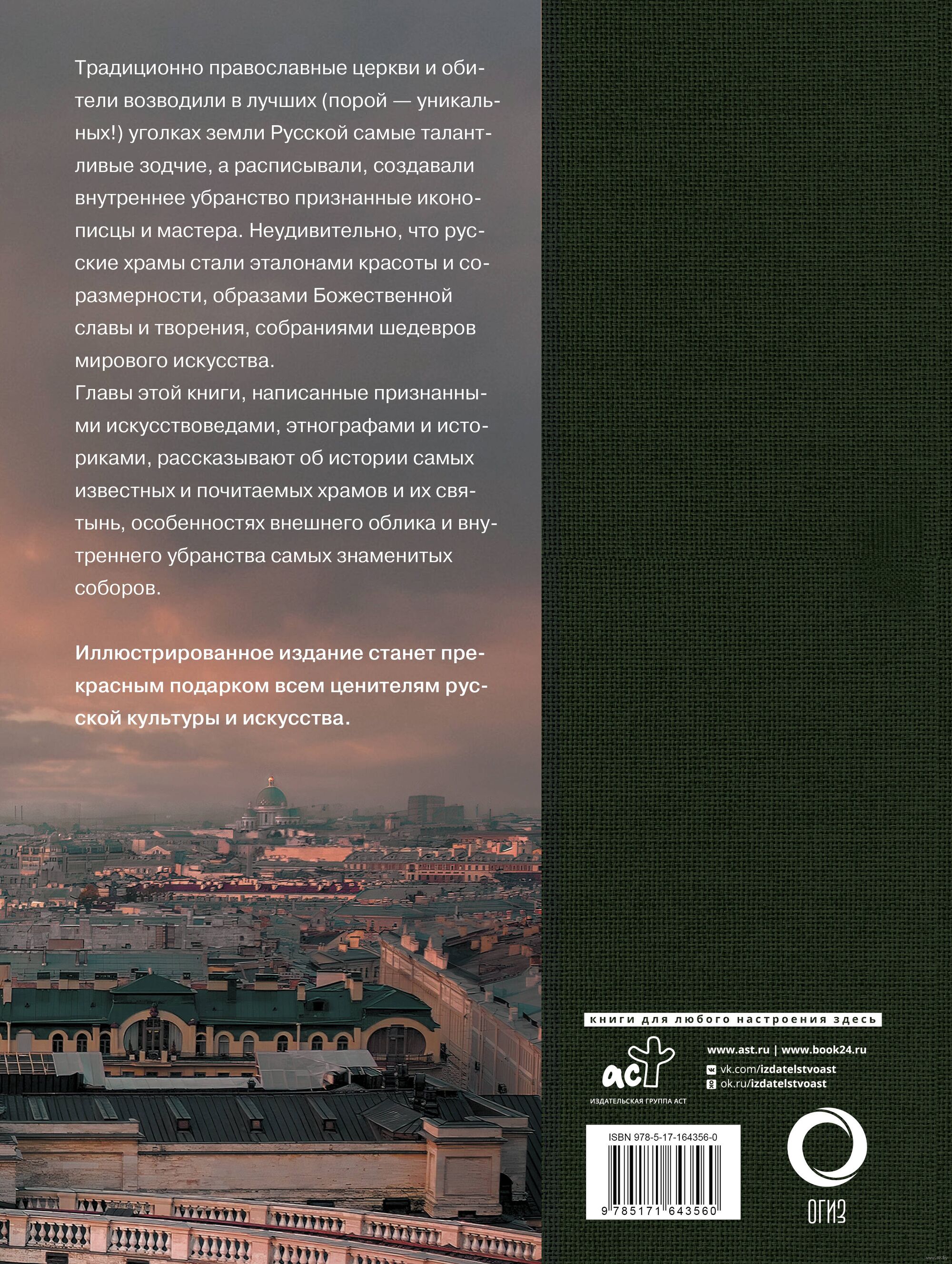 Главы этой книги, написанные признанными искусствоведами, этнографами и историками, рассказывают об истории самых известных и почитаемых храмов и их святынь, особенностях внешнего облика и внутреннего убранства самых знаменитых соборов.