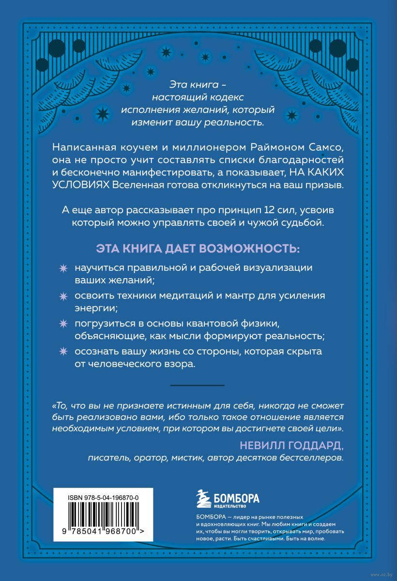 Написанная коучем и миллионером Раймоном Самсо, она не просто учит составлять списки благодарностей и бесконечно манифестировать, а показывает, НА КАКИХ УСЛОВИЯХ Вселенная готова откликнуться на ваш призыв.