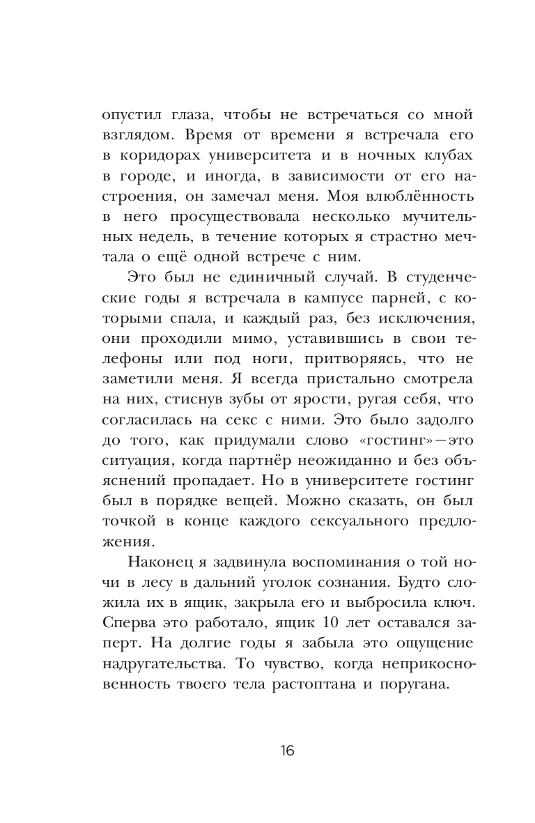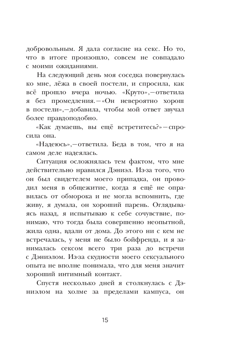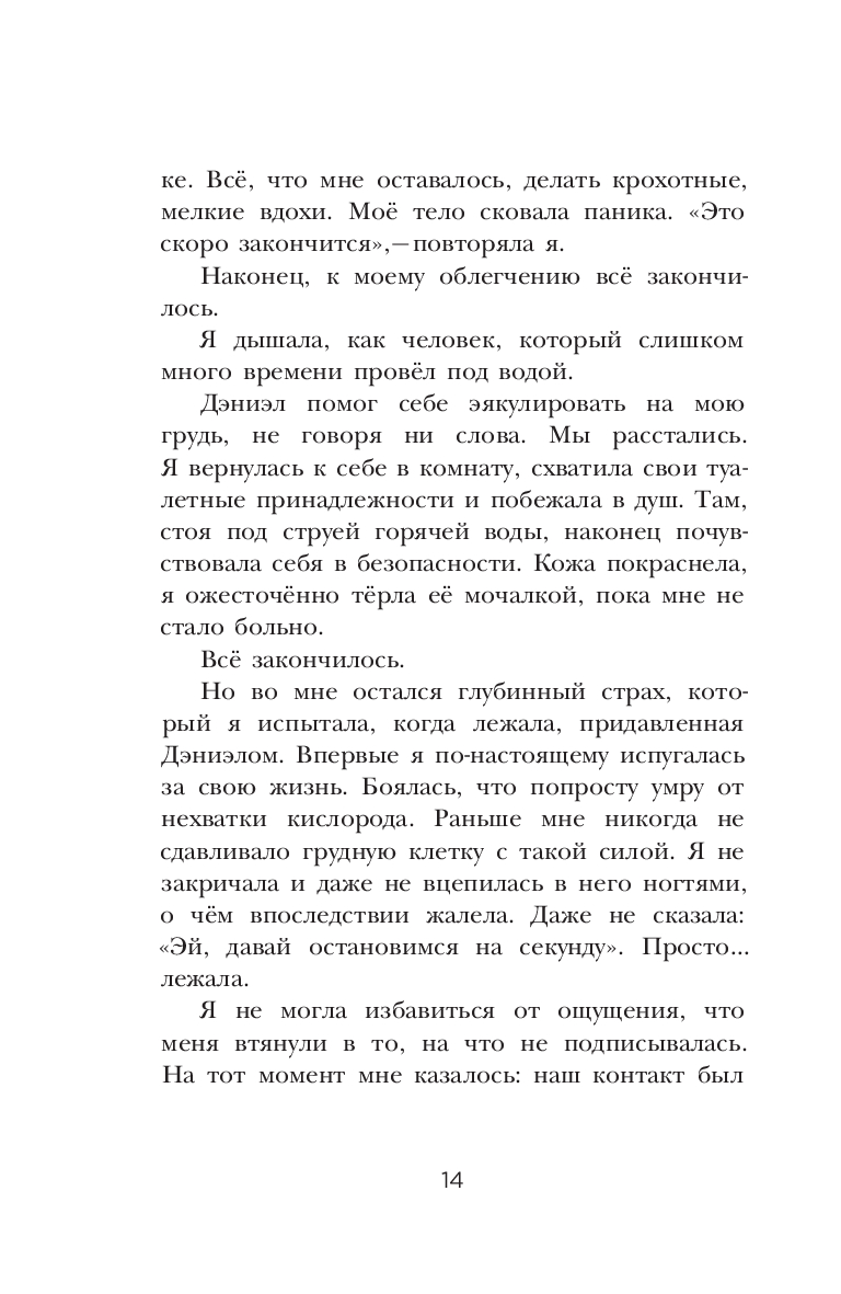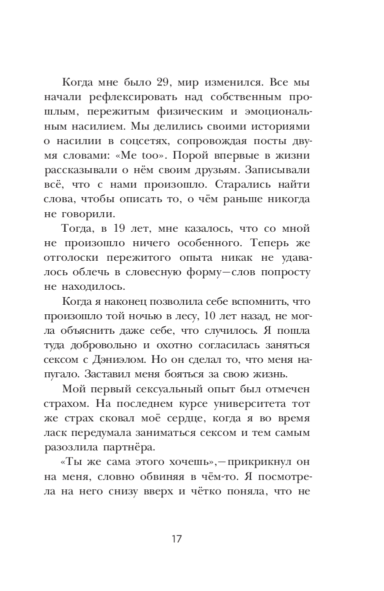 Эксперт по отношениям Рейчел Томпсон откровенно и отважно говорит на такую важную тему, как сексуальное насилие. Причем, речь вовсе не о нападении агрессивного незнакомца и не о встрече с маньяком в темном переулке. Рейчел рассказывает о том, что порой происходит в наших же собственных спальнях, при общении с близкими или хорошо знакомыми нам людьми – с теми, кого мы считали своими друзьями, кому доверяли и даже любили. Автор описывает опыт более 50-ти женщин, переживших то, о чем предпочли бы навсегда забыть. В том числе, и свой собственный...