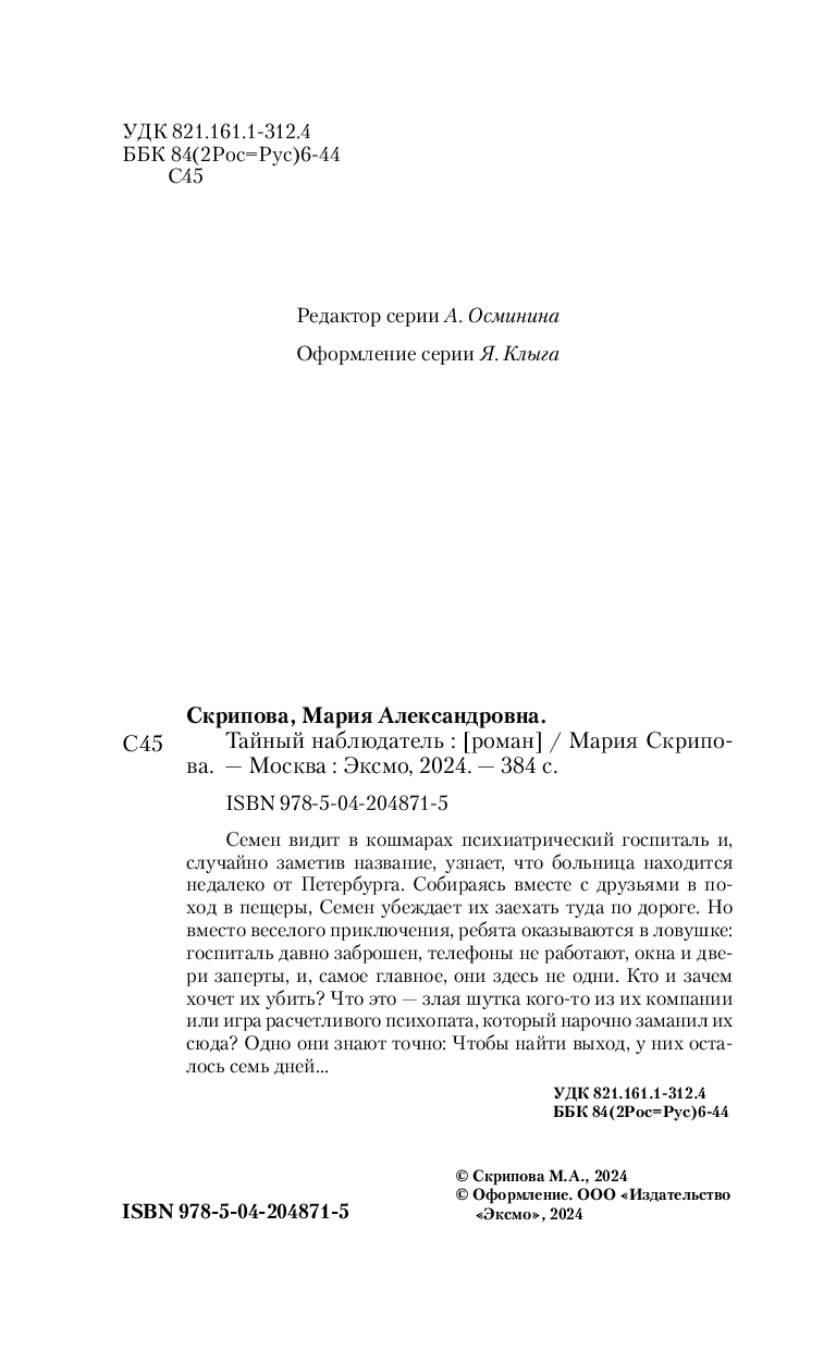 | Серия | Tok. Пациент. Психиатрический триллер Марии Скриповой |