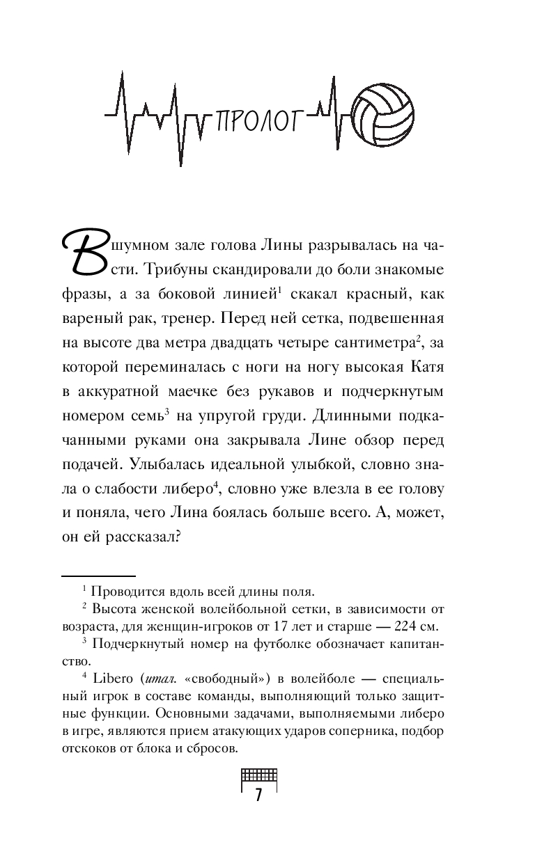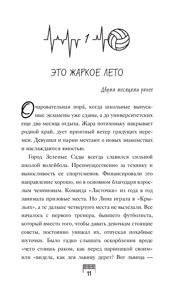 Лине Беляевой семнадцать, и она только что окончила школу. Впереди – вся жизнь и море возможностей! На носу чемпионат страны по волейболу, а значит, она не может подвести свою команду. После стартовых игр они отправляются в спортивный лагерь, где тренируются и парни из студенческой сборной. Их капитан, Вадим Ли, известен не только своим мастерством, но и прямолинейностью. Знакомство с ним сразу не задалось, и Лина находится меж двух огней: трепетом перед его невероятным талантом и откровенной неприязнью. Но чтобы победить страх перед мячом и привести команду к победе, Лина должна принять его помощь.