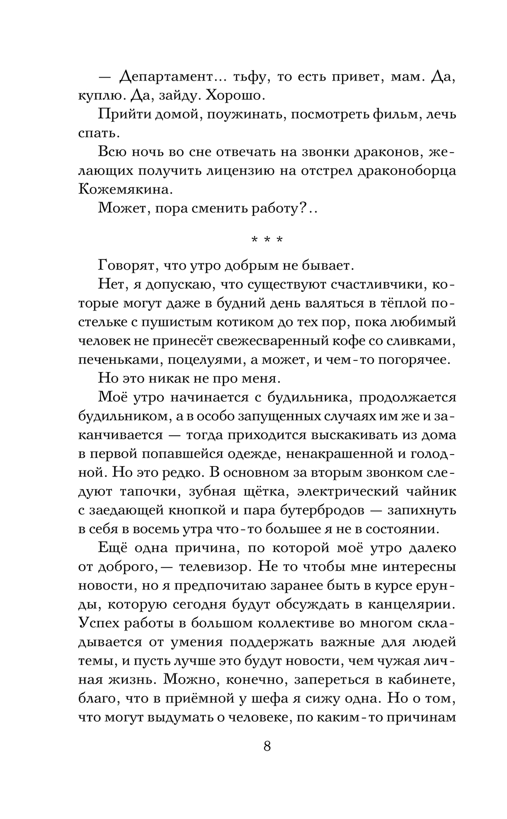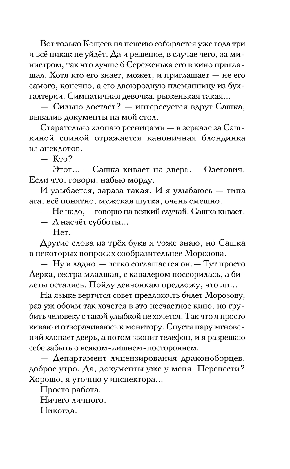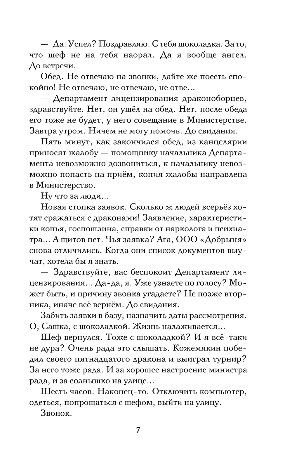 Катя Платонова работает в Департаменте лицензирования драконоборцев, а ее жизнь полна офисной рутины и одиночества. Ведь у девушки есть секрет, из-за которого она отталкивает всех, кто ей дорог.