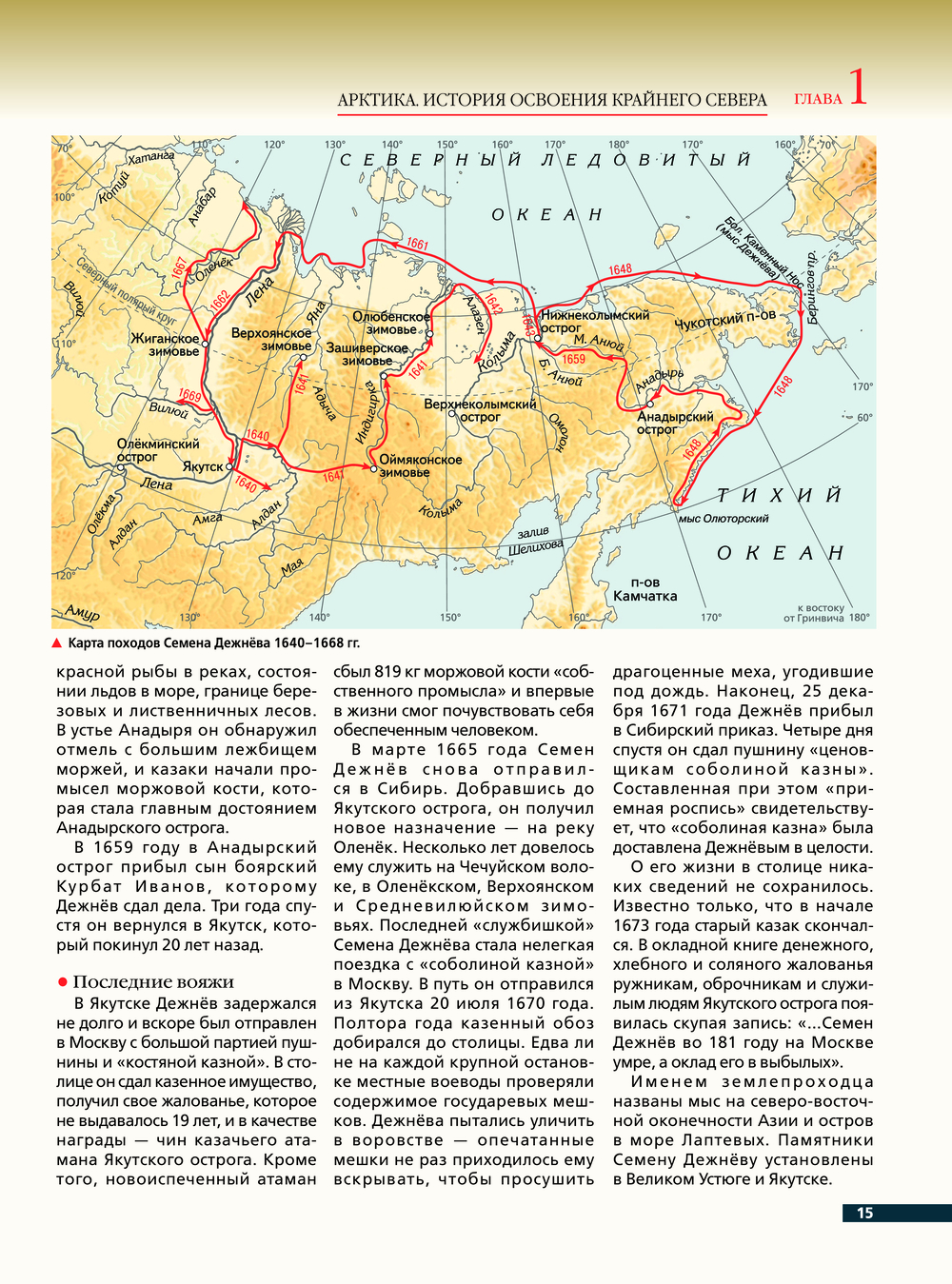 Книга "Арктика. История освоения Крайнего. Большой иллюстрированный атлас" рассказывает о судьбах российских исследователей и их экспедициях. Читатель узнает о путешествиях Семена Дежнёва, Витуса Беринга и Алексея Чирикова, о героях Великой Северной экспедиции, о плаваниях Федора Литке, полярных исследованиях Отто Шмидта, Ивана Папанина и Михаила Сомова.