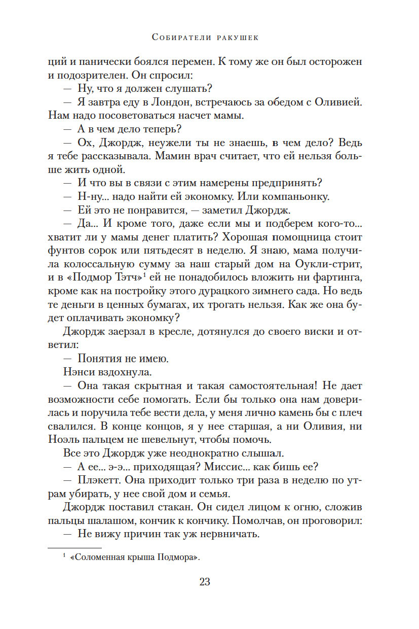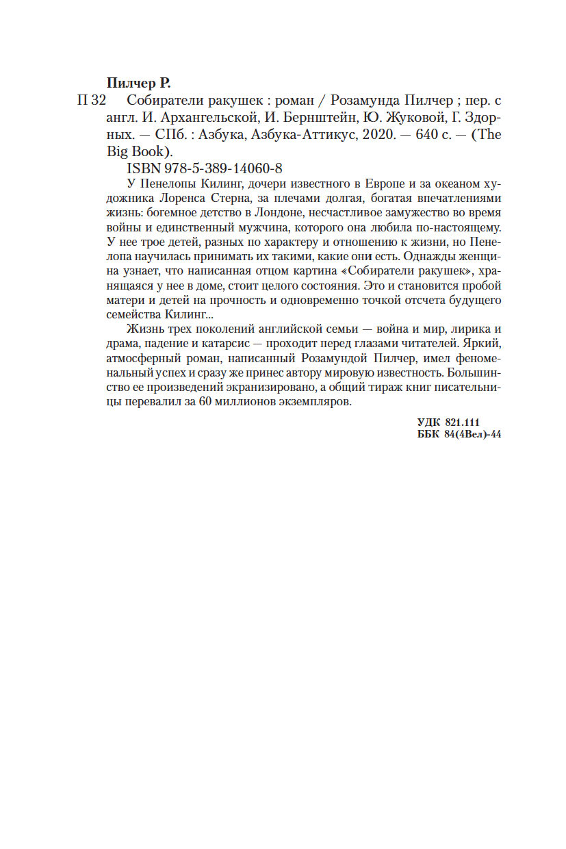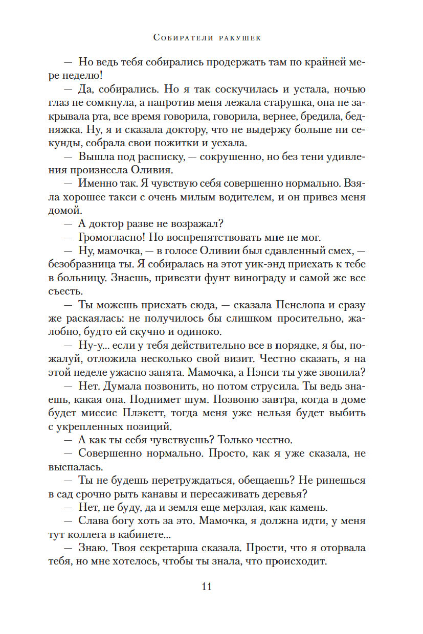 У Пенелопы Килинг, дочери известного в Европе и за океаном художника Лоренса Стерна, за плечами долгая, богатая впечатлениями жизнь: богемное детство в Лондоне, несчастливое замужество во время войны и единственный мужчина, которого она любила по-настоящему. У нее трое детей, разных по характеру и отношению к жизни, но Пенелопа научилась принимать их такими, какие они есть. Однажды женщина узнает, что написанная отцом картина "Собиратели ракушек", хранящаяся у нее в доме, стоит целого состояния. Это и становится мерой испытания матери и детей на прочность и одновременно точкой отсчета будущего семейства Килинг...