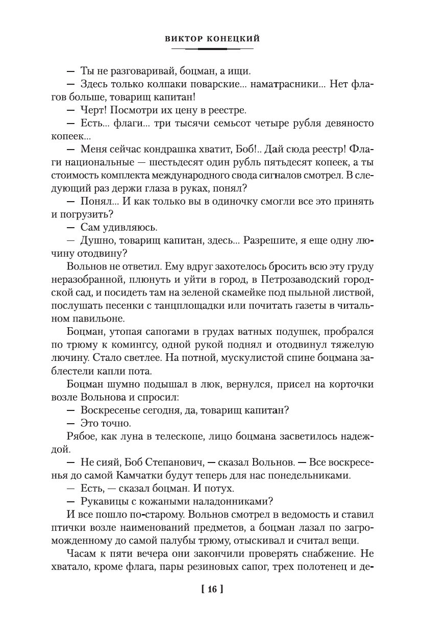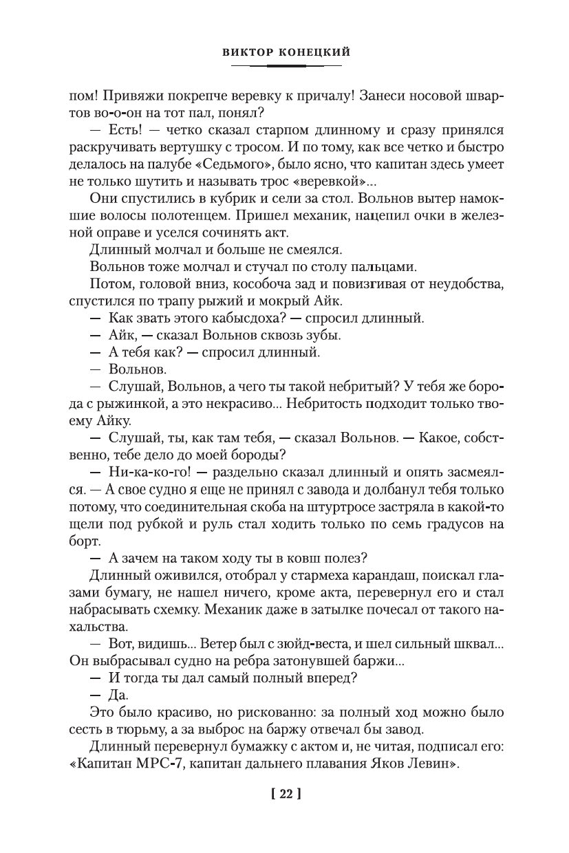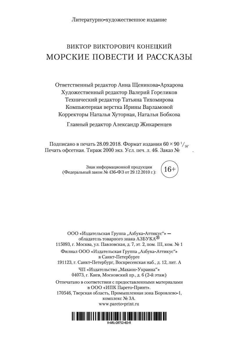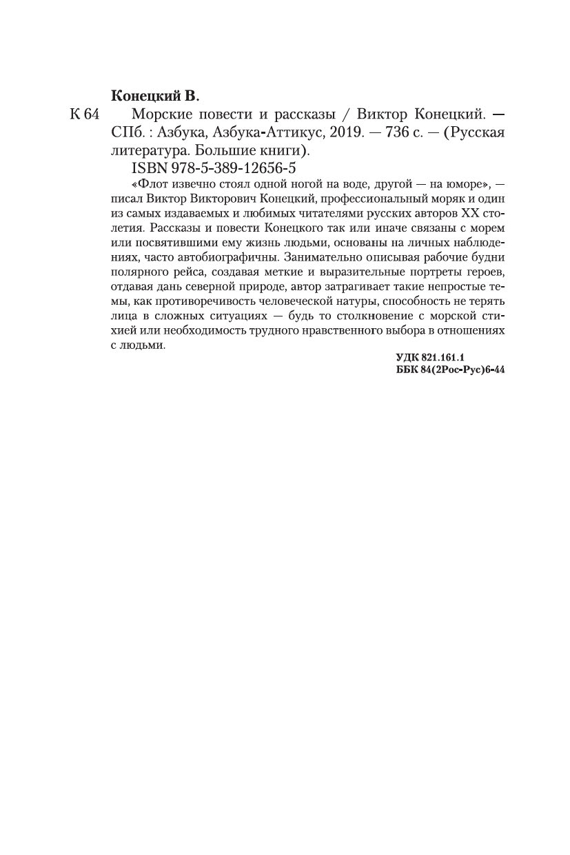 "Флот извечно стоял одной ногой на воде, другой – на юморе", – писал Виктор Викторович Конецкий, профессиональный моряк и один из самых издаваемых и любимых читателями русских авторов XX столетия. Рассказы и повести Конецкого так или иначе связаны с морем или посвятившими ему жизнь людьми, основаны на личных наблюдениях, часто автобиографичны.