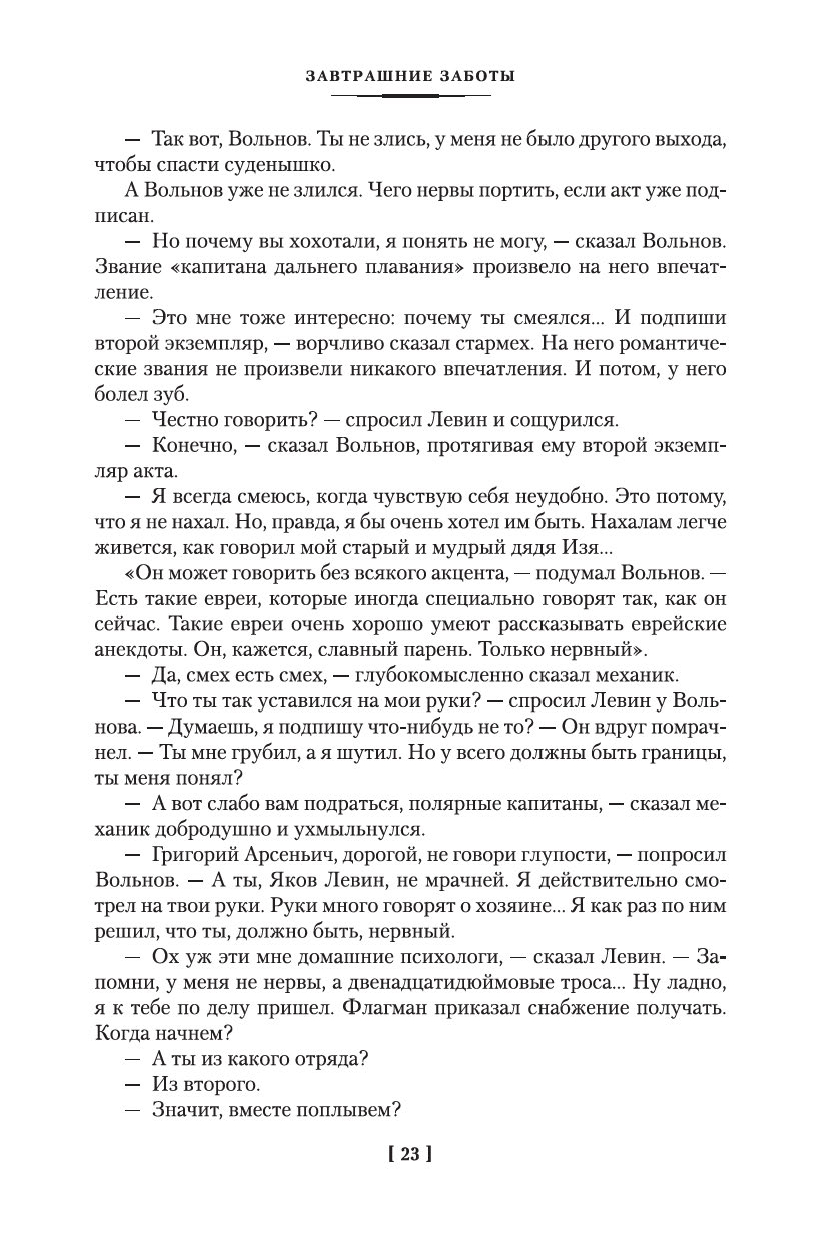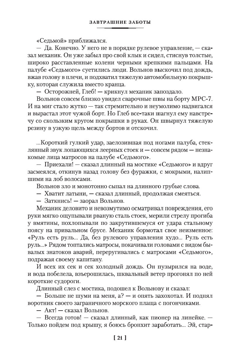 Занимательно описывая рабочие будни полярного рейса, создавая меткие и выразительные, портреты героев, отдавая дань северной природе, автор затрагивает такие непростые темы, как противоречивость человеческой натуры, способность не терять лица в сложных ситуациях – будь то столкновение с морской стихией или необходимость трудного нравственного выбора в отношениях с людьми.