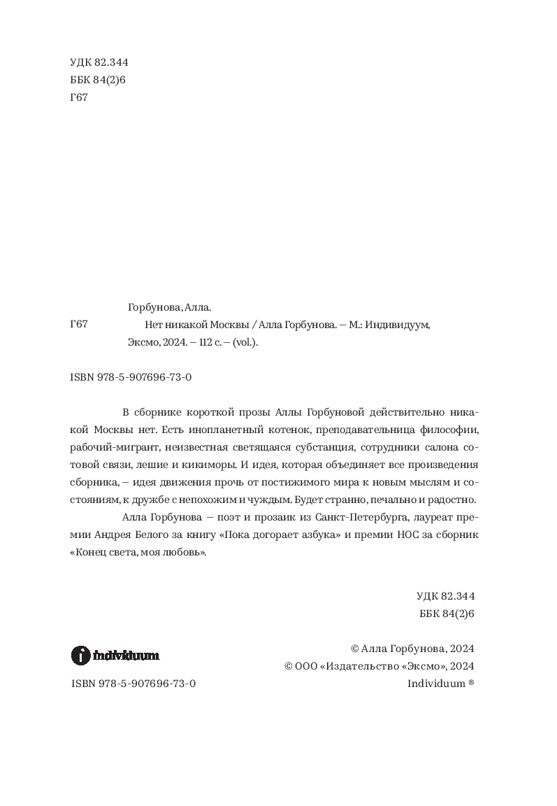 | ООО "Индивидуум Паблишинг" . 117535, РФ, г. Москва, ул. Газопровод, 6 к. 1, пом. ИИ, ком . 2 | |