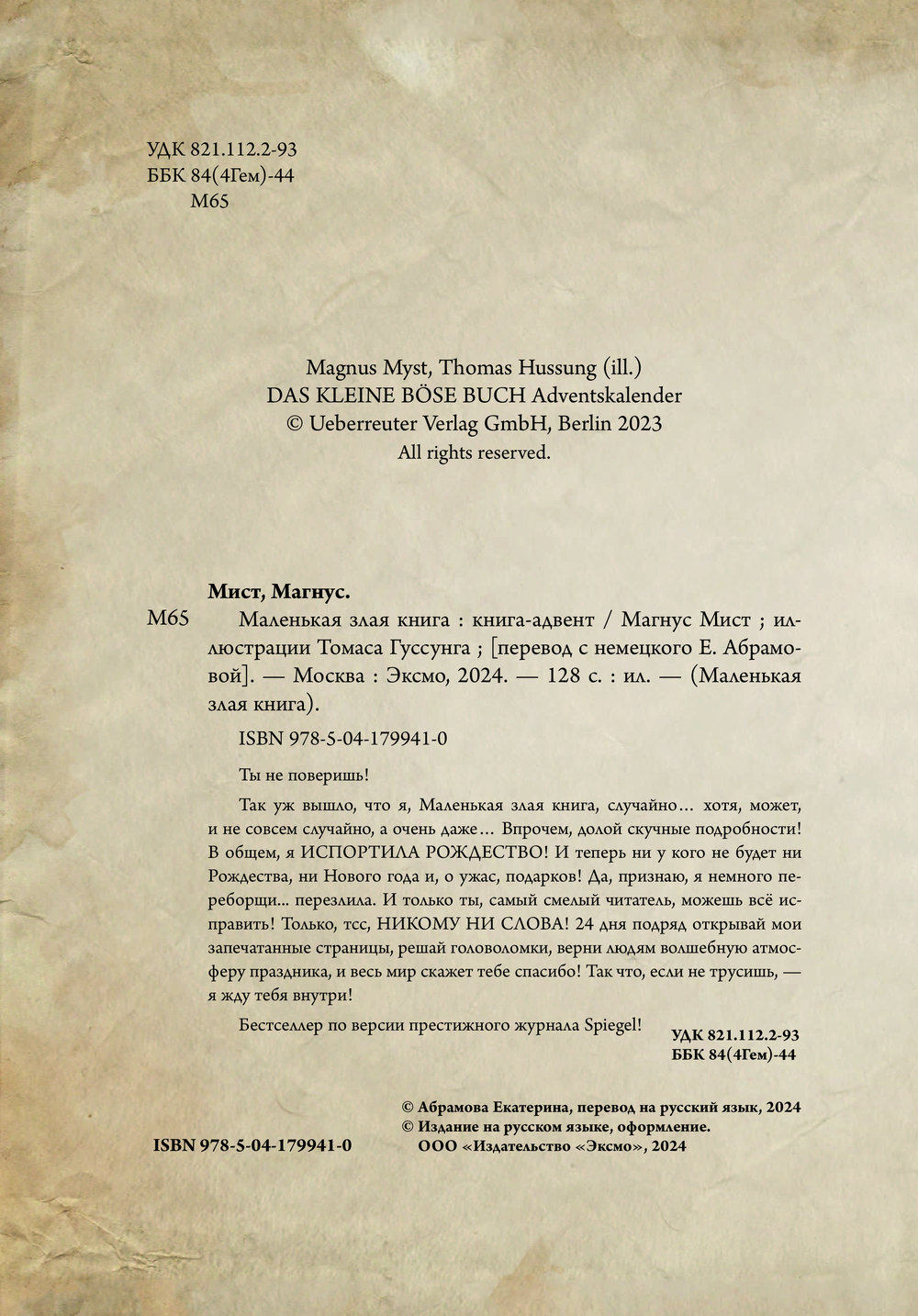 | Название в оригинале | Das kleine Böse Buch – Adventskalender by Magnus Myst |
