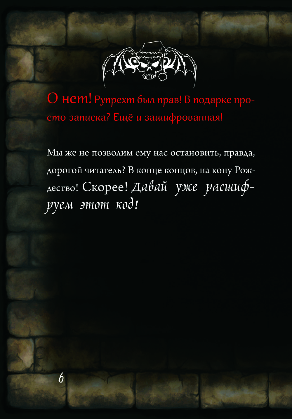 "Маленькая злая книга" снова удивляет! Фишка этого издания – запечатанные страницы, которые нужно открывать строго по 2 день (и так 24 раза!). Но что осталось неизменным – так это весёлые приключения, неожиданные повороты сюжета, разнообразные задания и встречи с удивительными героями.