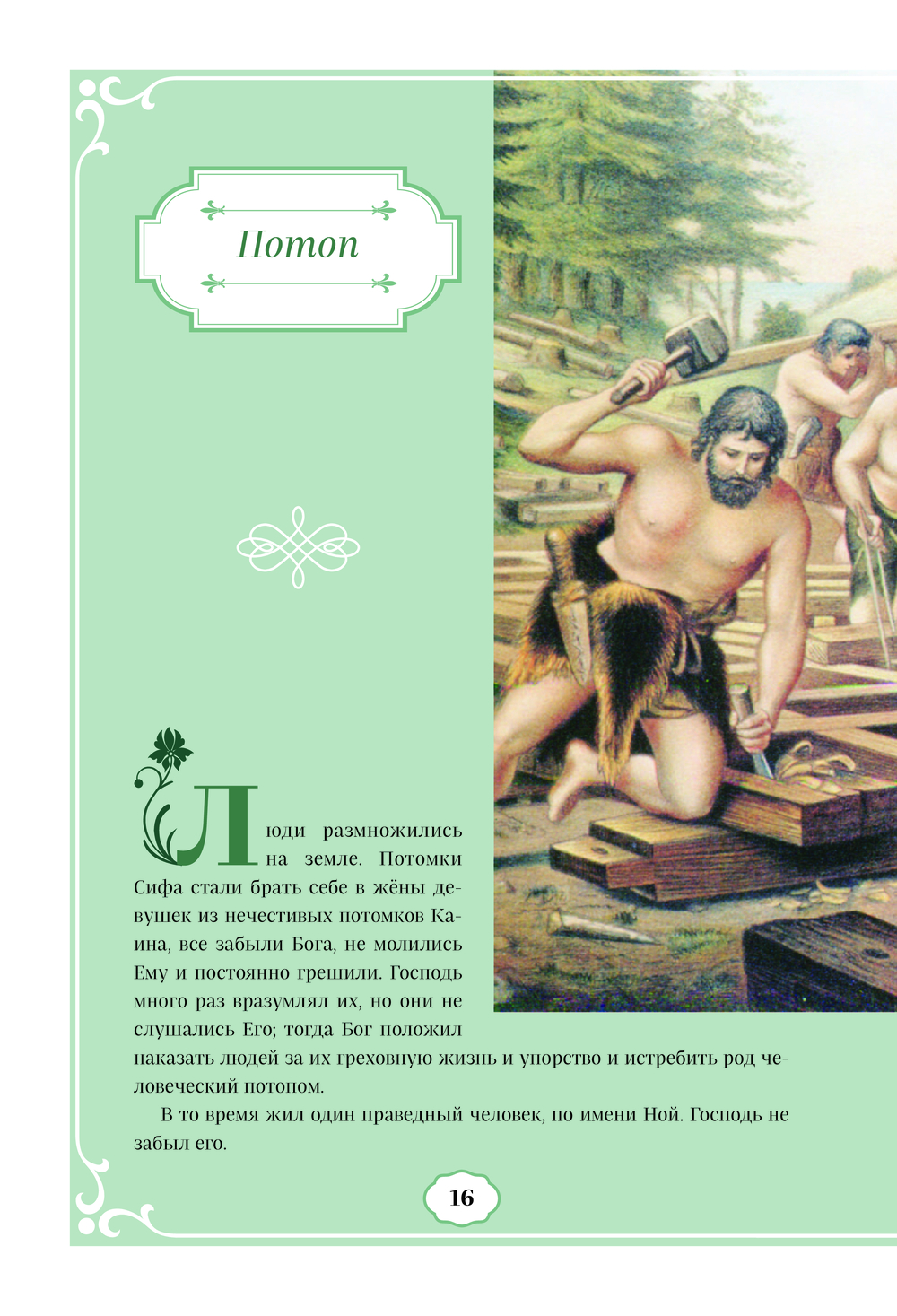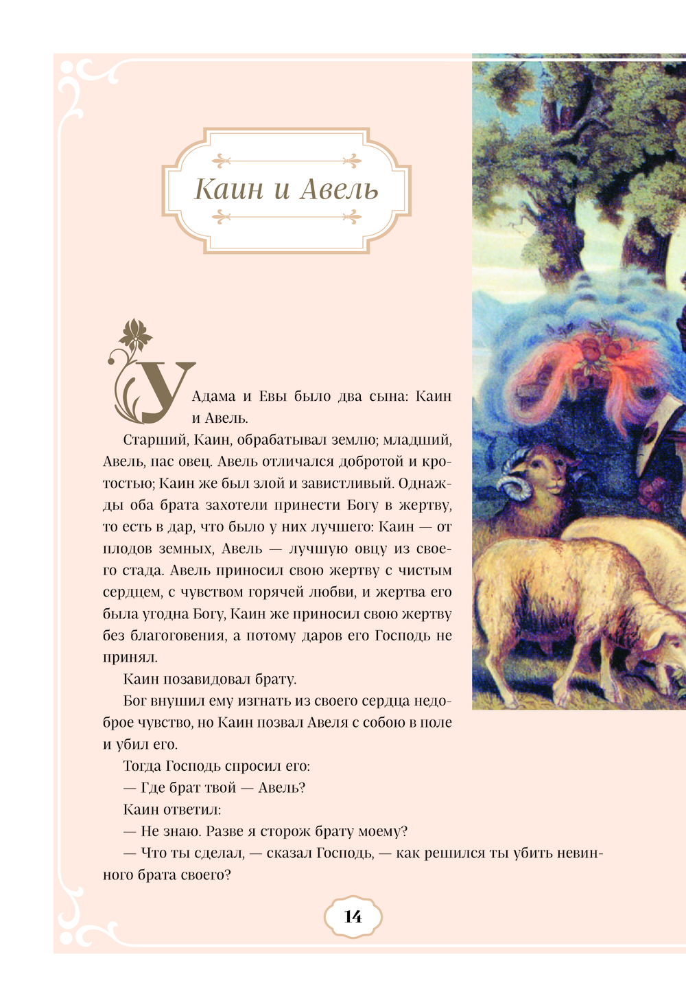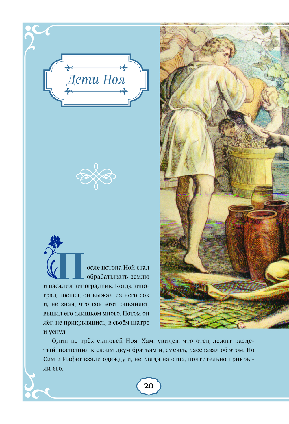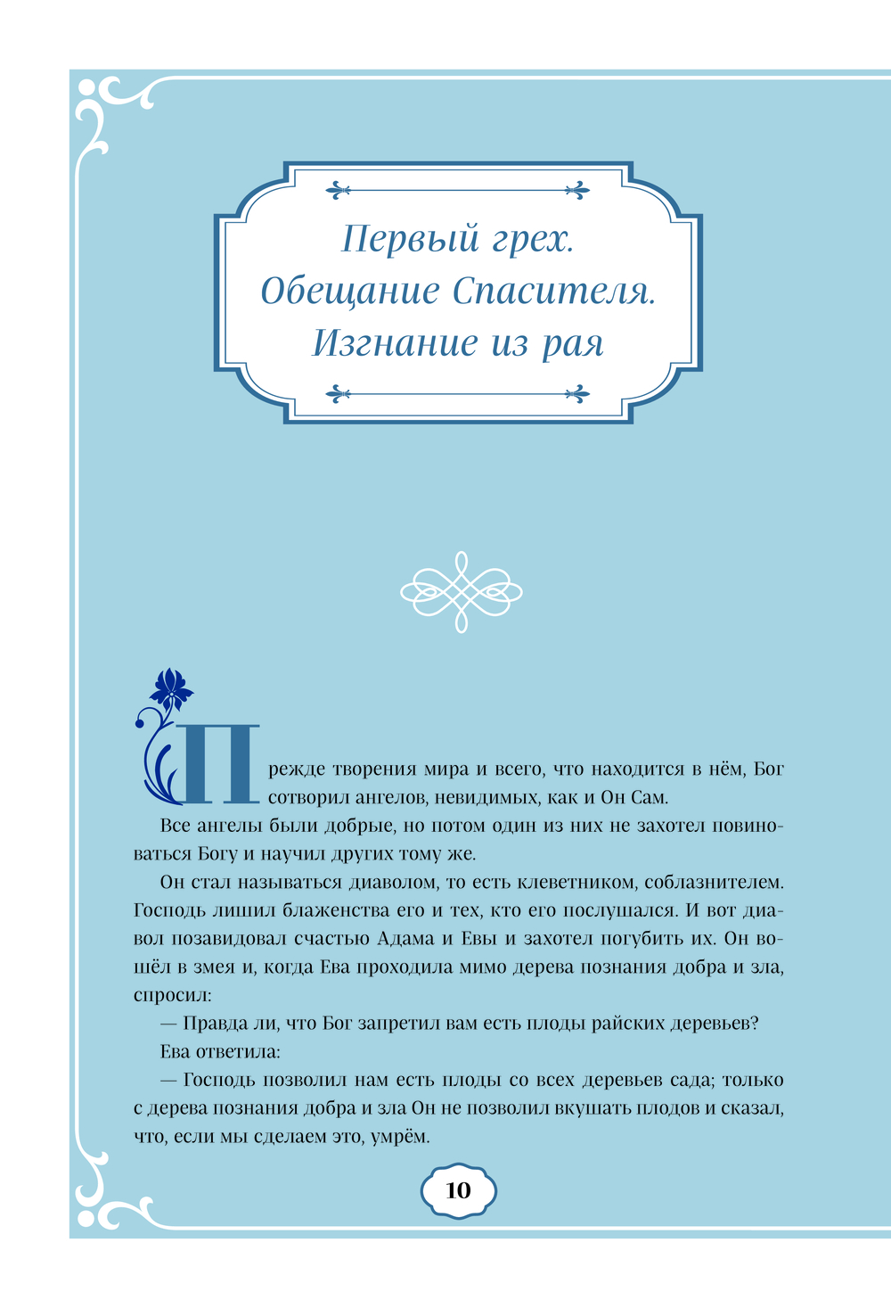 Состоит из двух частей: Ветхого Завета, начиная от сотворения мира, и Нового Завета, начиная от Рождества Христова. Украшена иллюстрациями русских художников начала XX века.