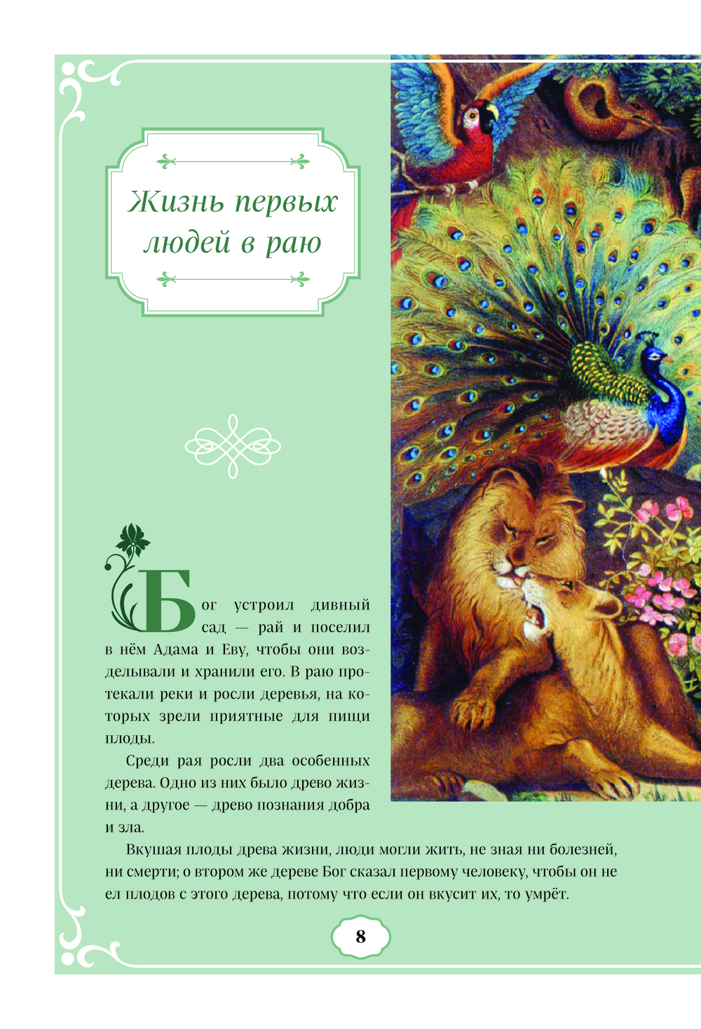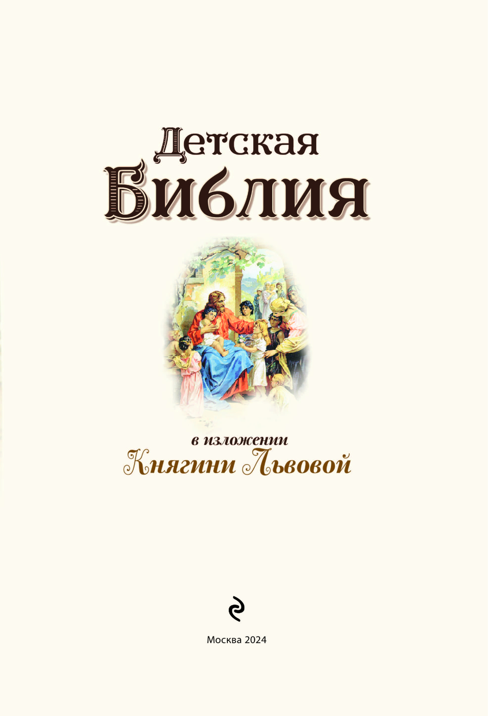 Детская Библия составлена известной детской писательницей княгиней Марией Александровной Львовой для детей императорской четы и посвящена маленькой русской царевне Ольге, старшей дочери последнего Российского Императора Николая II.