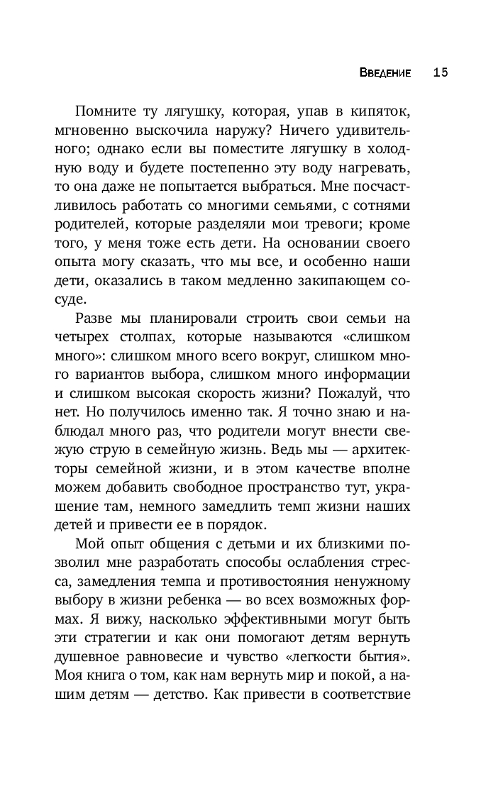 В современном мире дети слишком перегружены уроками, тренировками и внешкольными занятиями. Это приводит к постоянной усталости, проблемам с учебой и перепадам настроения. Детям не хватает времени на игры, общение со сверстниками и исследование окружающего мира. В своей книге знаменитый психолог и педагог Ким Джон Пейн предлагает эффективную концепцию упрощения и гармонизации жизни ребенка, которая избавит его от перегрузок и стресса, вдохнет в него уверенность в себе и тягу к знаниям.