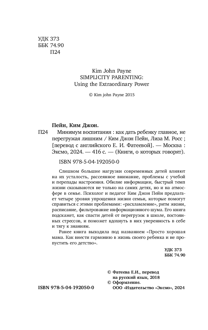 | Название в оригинале | Simplicity Parenting: Using the Extraordinary Power |