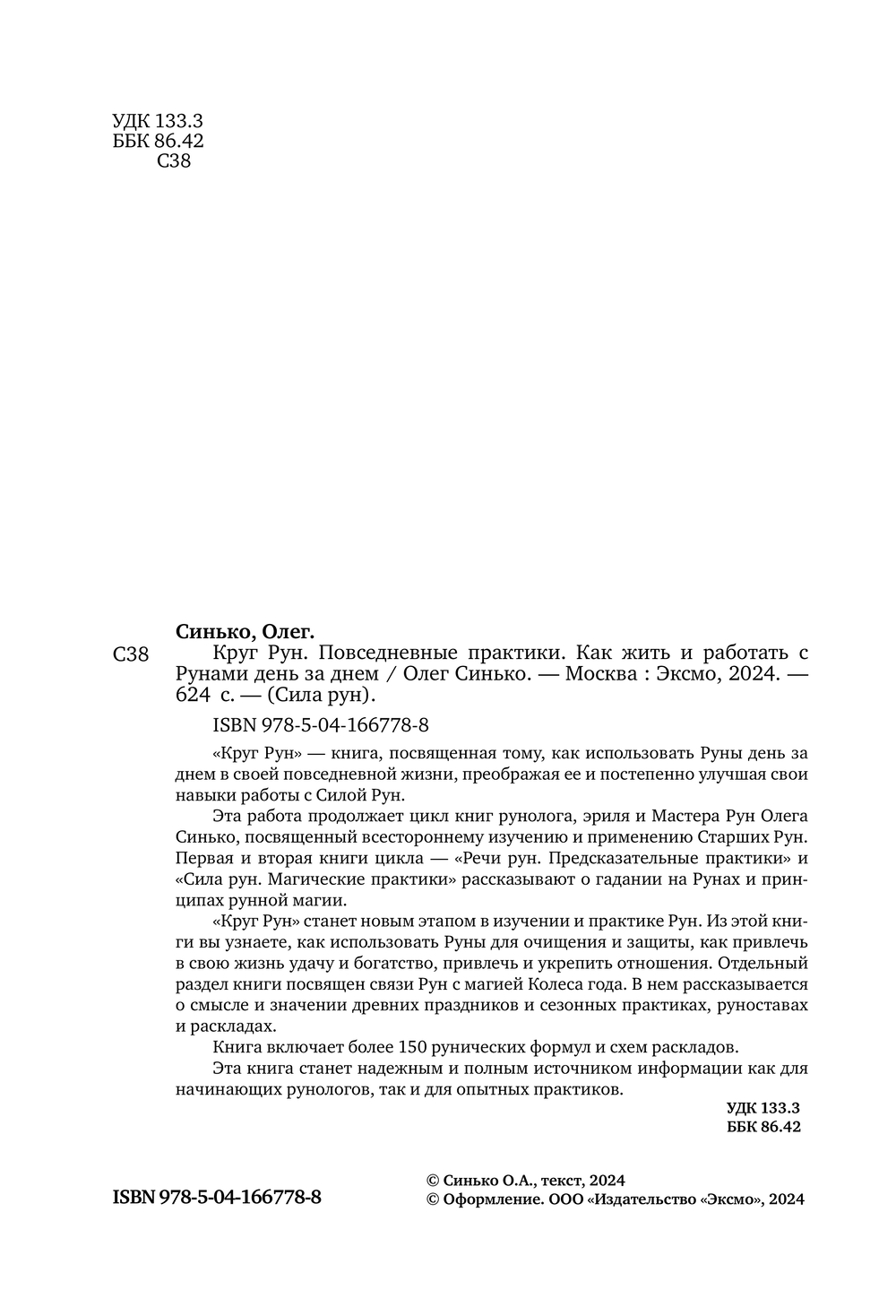 "Круг Рун" – книга, посвященная тому, как использовать Руны день за днем в своей повседневной жизни, преображая ее и постепенно улучшая свои навыки работы с Силой Рун.