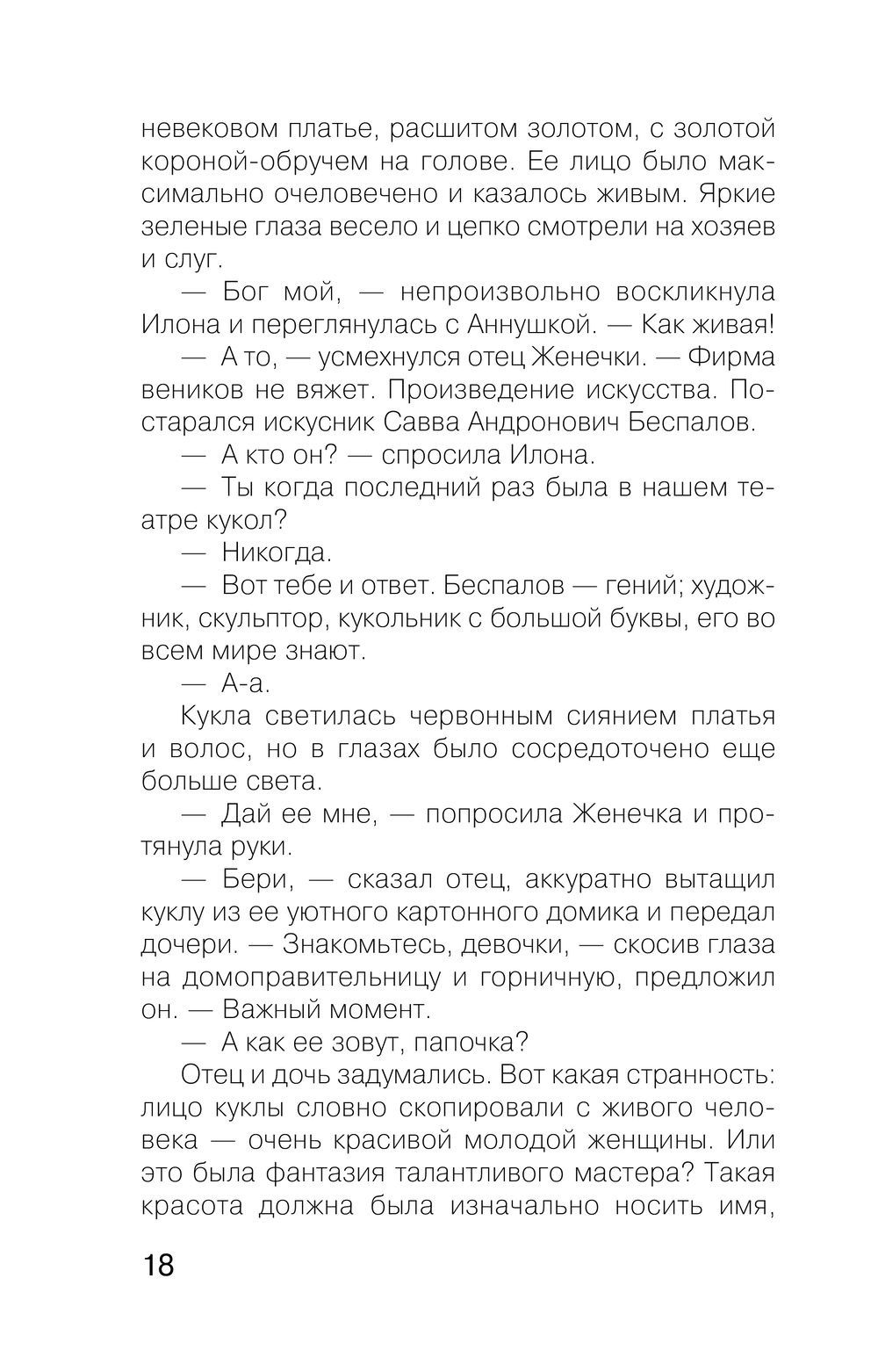Отец и мачеха решают отобрать ее у дочки, но поздно. Кукла занимает слишком большое место в жизни Женечки. Всю ее жизнь...
