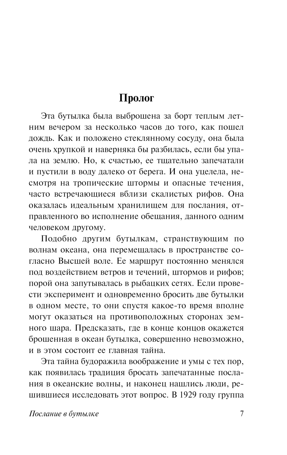 Кто поможет в этом Гаррету Блейку, много лет не желающему смириться с гибелью женщины, которая была смыслом его существования? Вновь и вновь запечатывает он в бутылки отчаянные, полные любви и тоски письма и бросает их в море, не рассчитывая получить ответ.