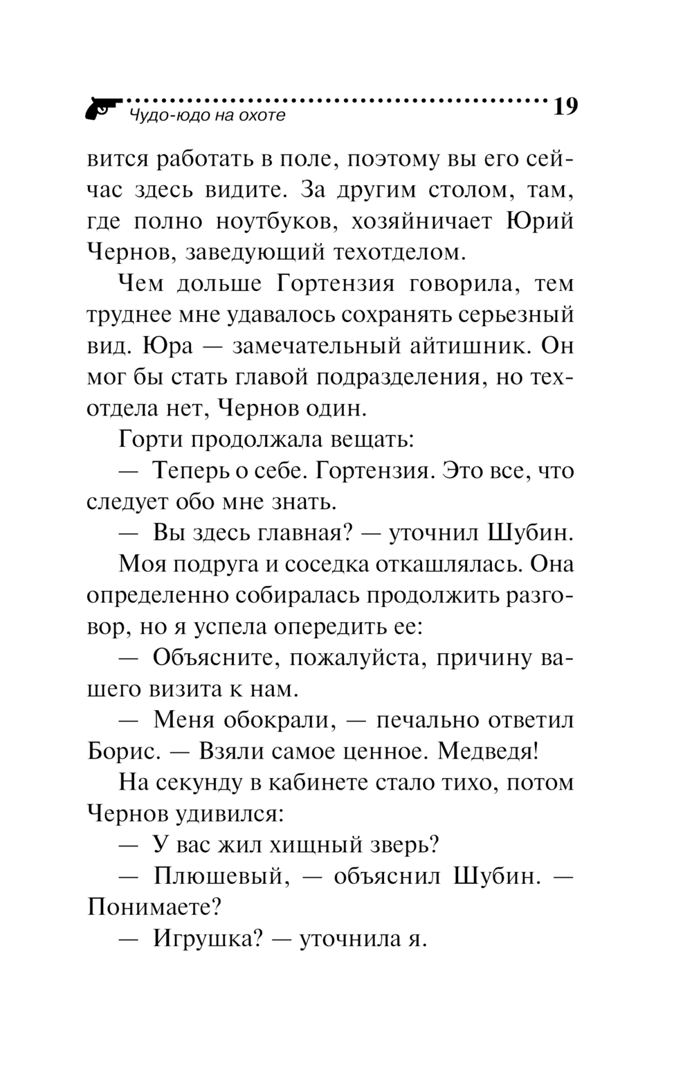 "Меня обокрали, взяли самое ценное. Медведя! Плюшевого!" – с такими словами в агентство Макса Вульфа обратился странный посетитель. Дело в том, что пропал медведь не простой, а "золотой". Арчибальд был расшит золотыми нитями и драгоценными камнями с ног до головы. Эта наследственная реликвия досталась Борису Шубину от родовитых предков. В один не прекрасный день Шубин обнаружил пропажу раритета. Камеры наблюдения зафиксировали его дочь Мирославу, которая вынесла медведя из спальни. Девочка выглядела странно – застывший взгляд, шаткая походка. После того как отец предъявил дочери запись, Мира приняла какие-то препараты, оказалась в больнице и теперь ни на что не реагирует. А медведя так след и простыл.