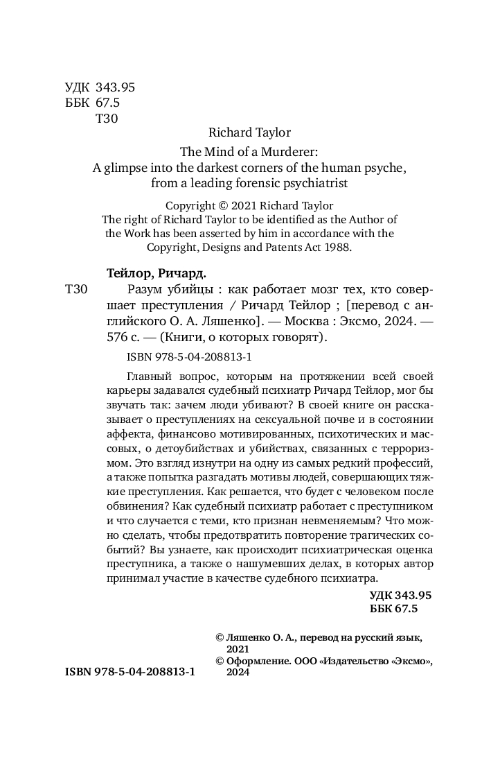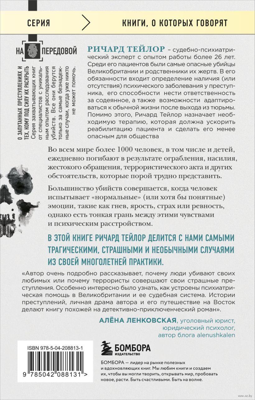 Вы узнаете, как происходит психиатрическая оценка преступника, а также о нашумевших делах, в которых автор принимал участие в качестве судебного психиатра.