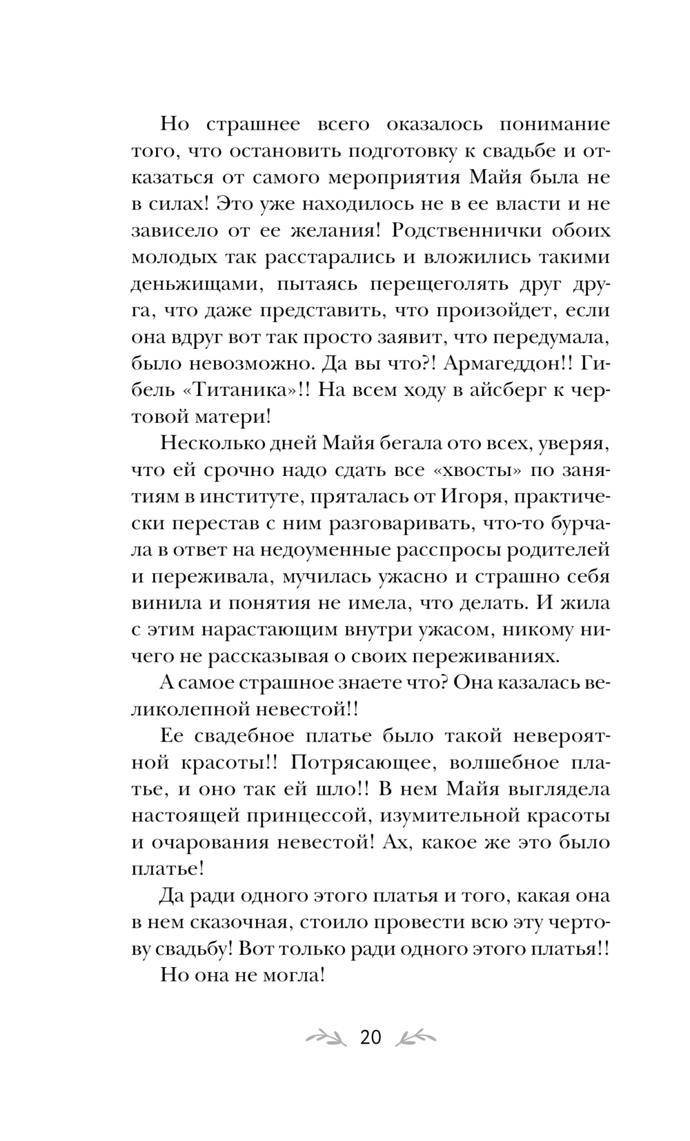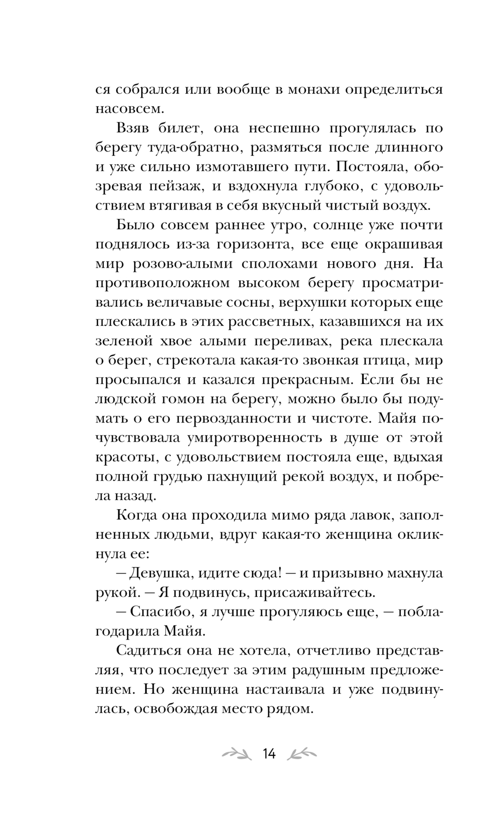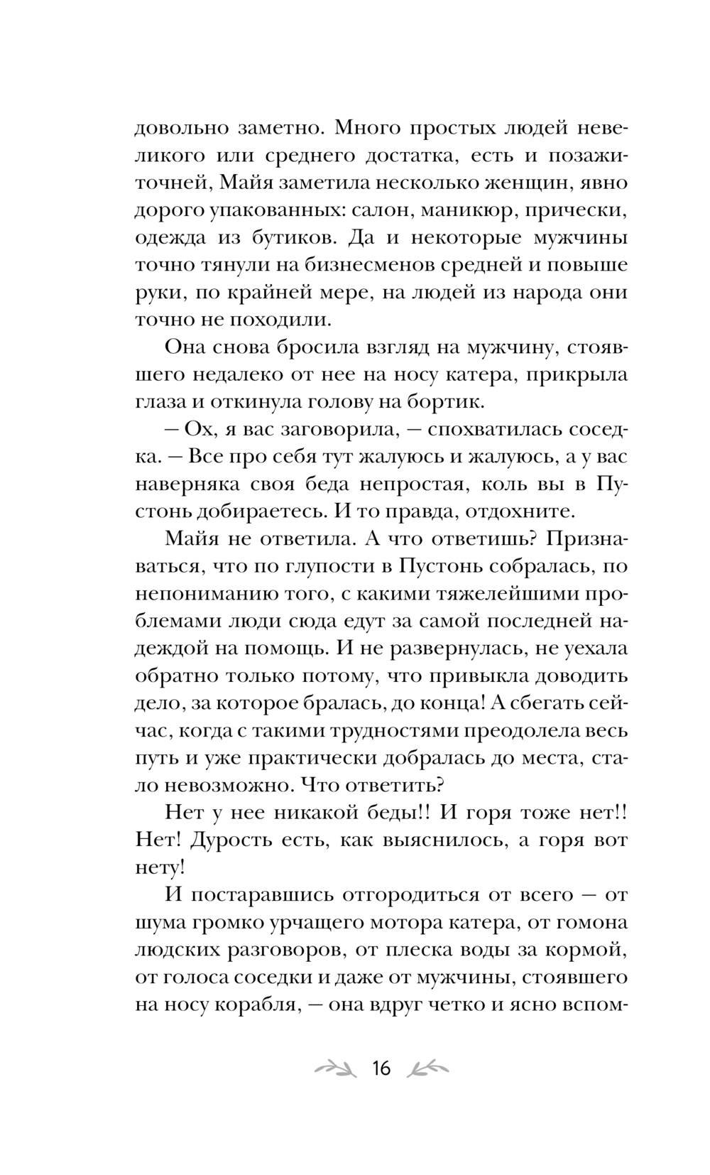 В двадцать лет Майя влюбилась. Все шло своим чередом – свидания, предложение руки и сердца, предсвадебные хлопоты... Было заказано чудесное платье, но чем ближе к свадьбе, тем больше нервничала девушка, уже переставшая понимать, что, собственно, она нашла в женихе. Майя сбежала буквально из-под венца. А через пять лет история повторилась, и еще через несколько лет – снова то же. Пытаясь разобраться, что же с ней не так и откуда взялся синдром сбежавшей невесты, девушка отправилась в паломничество в Пустонь. Там и ждала ее нечаянная радость...